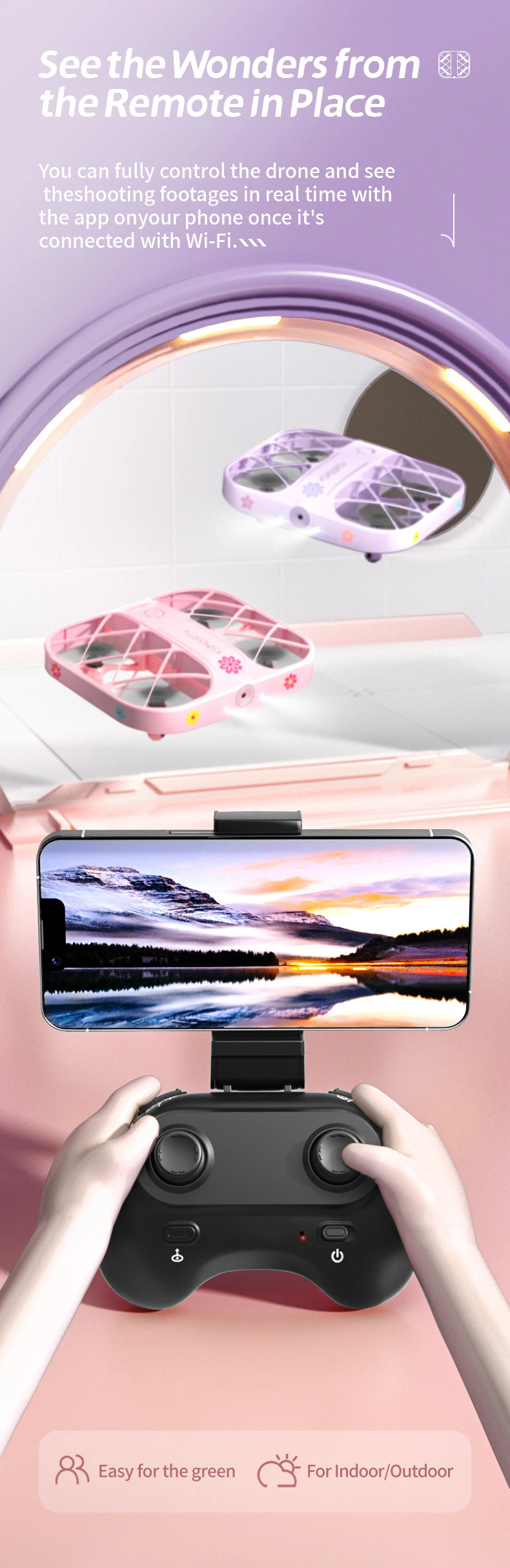 7. With Wifi, you can fully control the drone with mobile APP, and you can also watch aerial photos in real time.