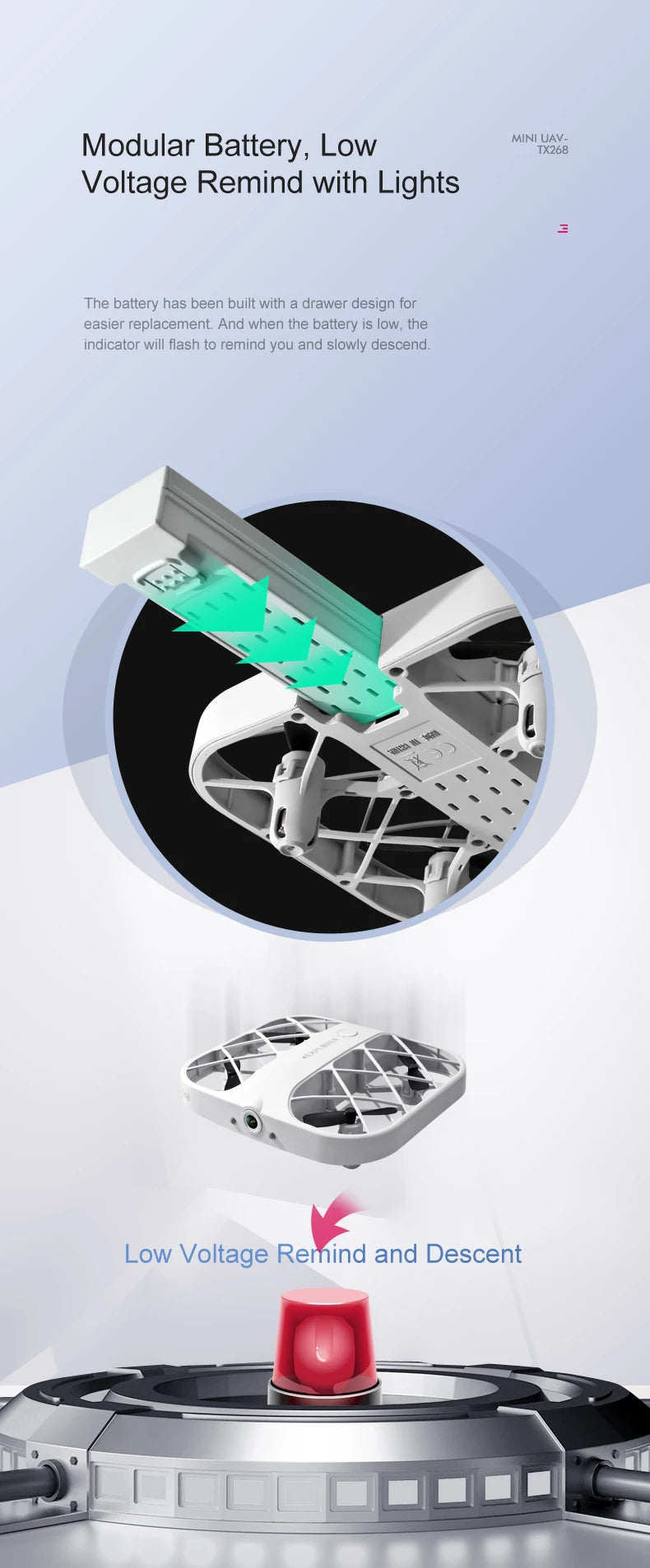 11. Drawer battery design makes it easier for you to exchange. When the battery is too low, the drone will blink.