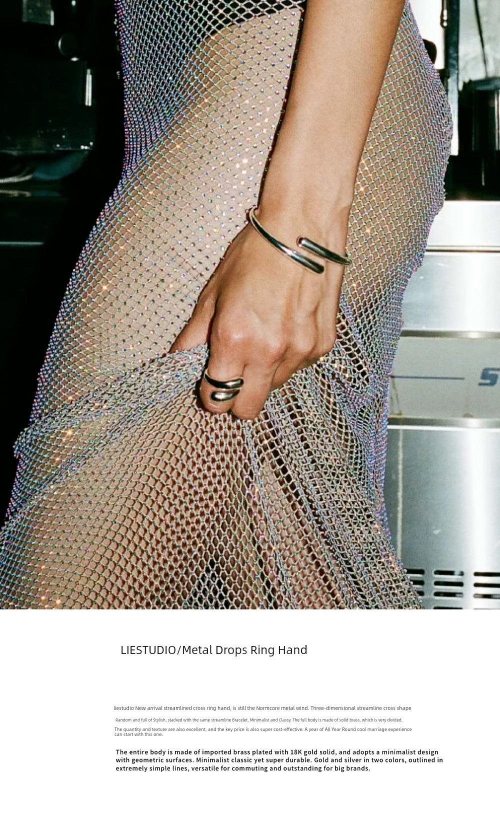 Minimalist Metal Feeling Neutral Water Drop Open Ring Liestudio Denmark Niche Style Retro Fashionable Twin Bracelet