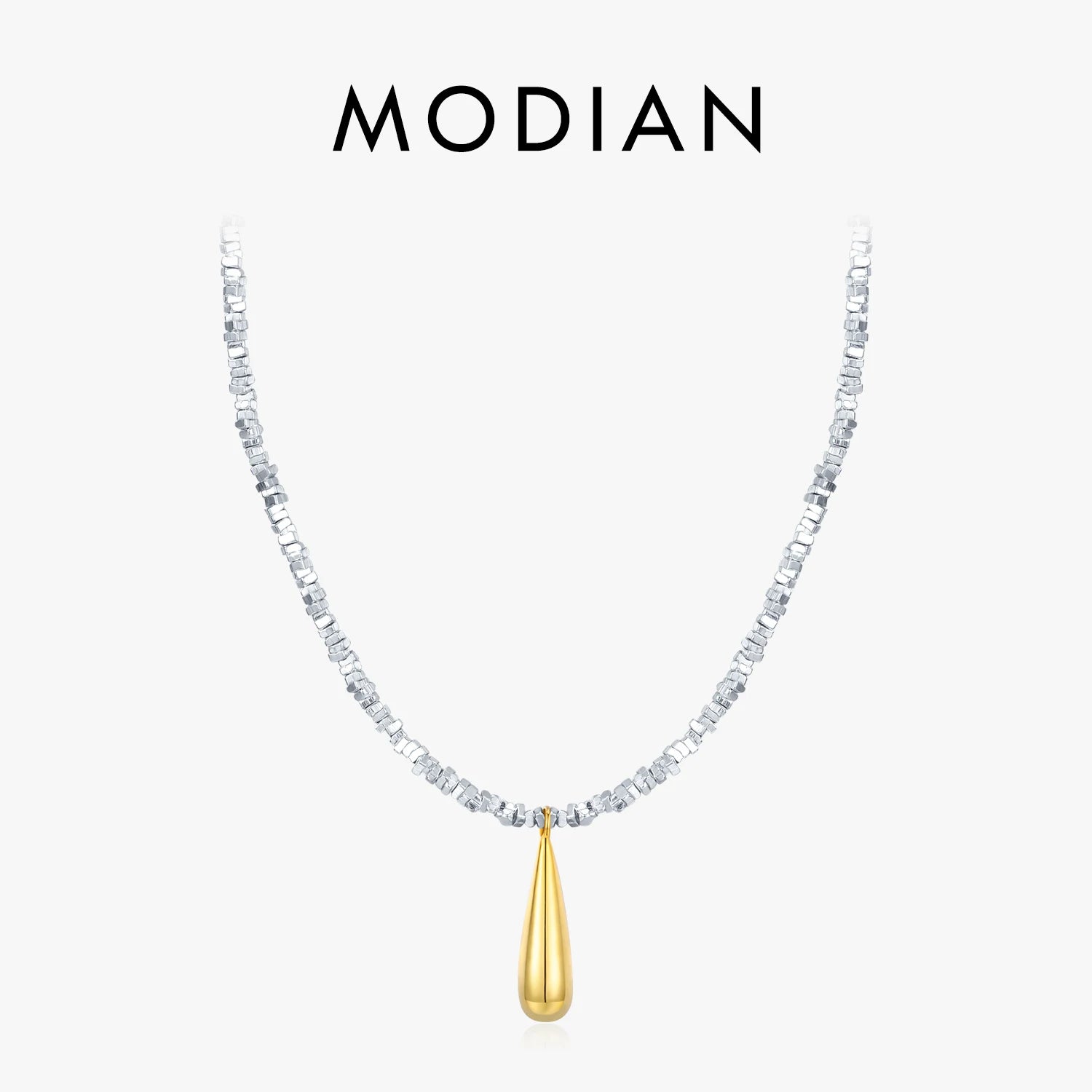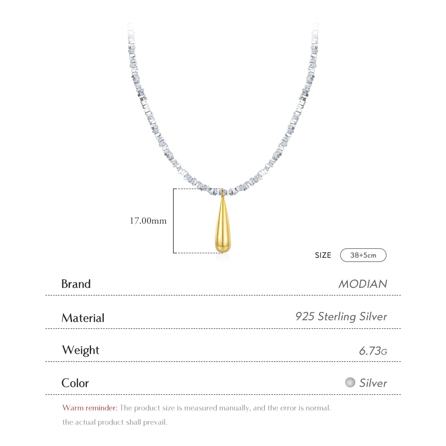 MODIAN 925 Sterling Silver Geometric Square Necklace Pendant Gold Color Water Drop Fine Jewelry For Women Valentine's Day Gifts