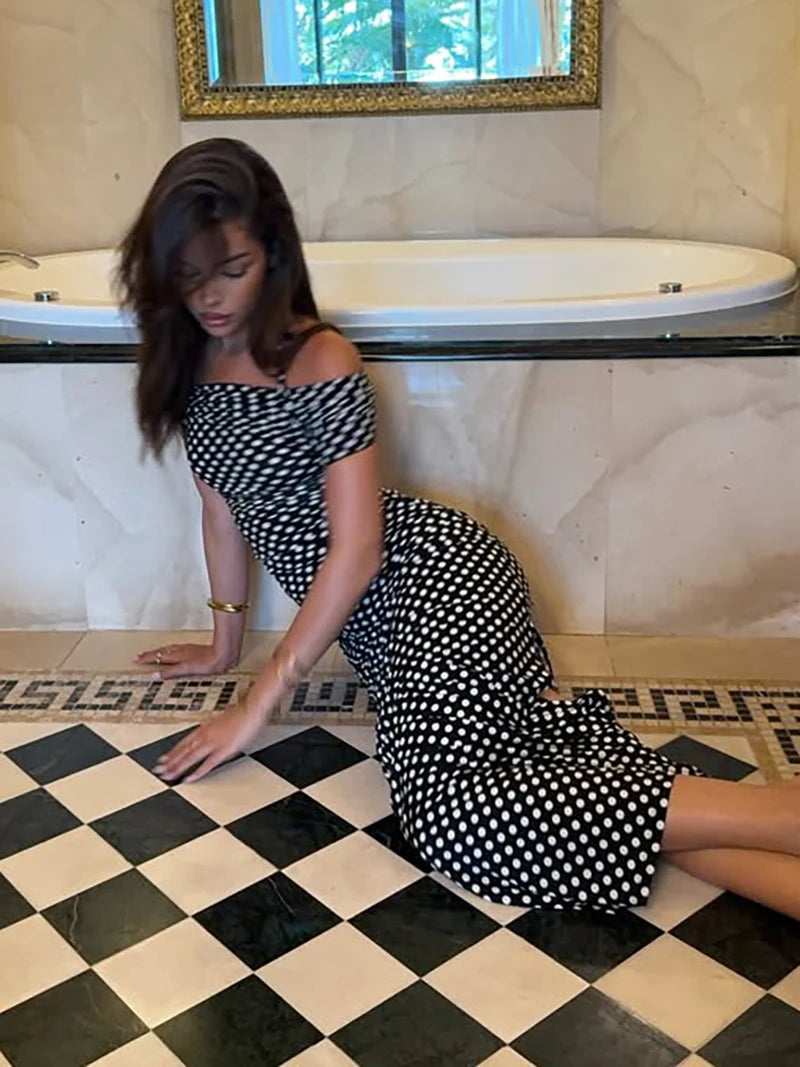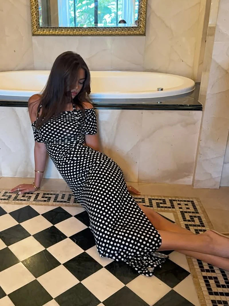 Mozision Off-shoulder Polka Dot Maxi Dress For Women Gown Fashion Halter Sleeveless Backless bodycon Split Long Dress Elegant