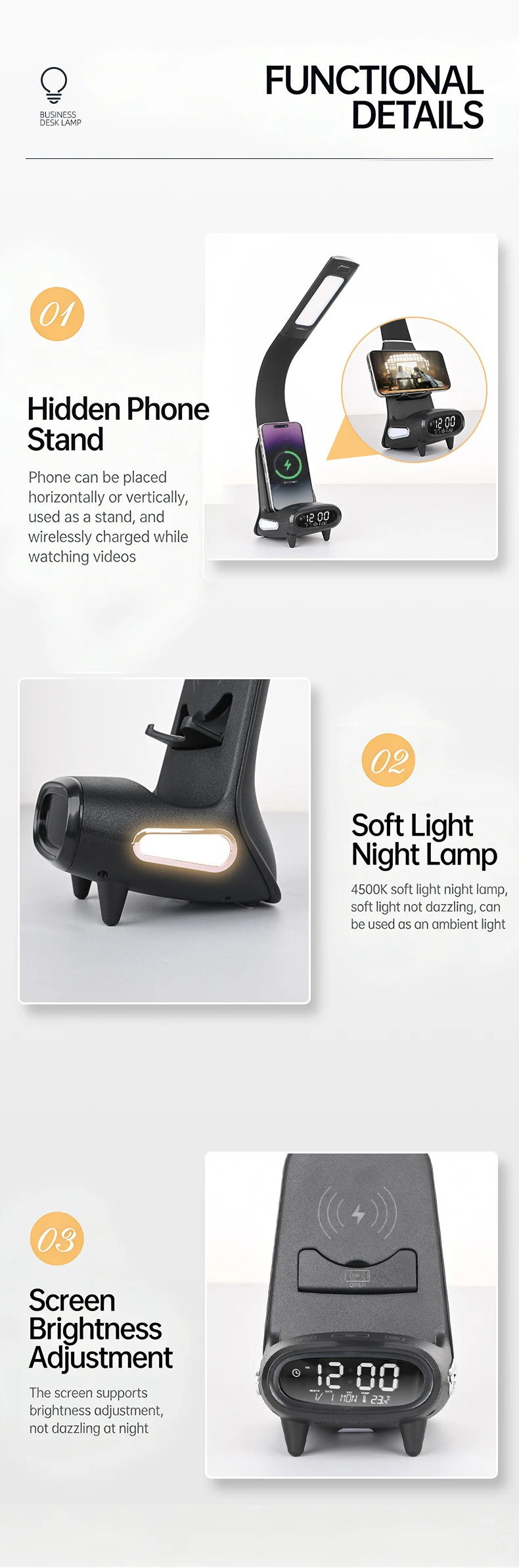 【LCD display】 Can display time, temperature, date, alarm clock and other functions,important information will not miss, the alarm clock will light up when the light will go off, important things are not late