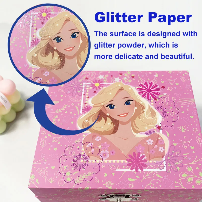1. The main body of this music jewelry storage box is made of high-quality paper, which is environmentally friendly and pollution-free. The surface is designed with glitter powder, which is more delicate and beautiful.