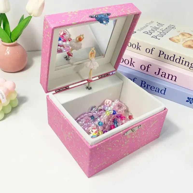 Music Jewelry Storage Box Glitter Powder Pink Princess Little Girl Gift Ring/Necklace/Bracelet/Earring Storage Desk Organizer