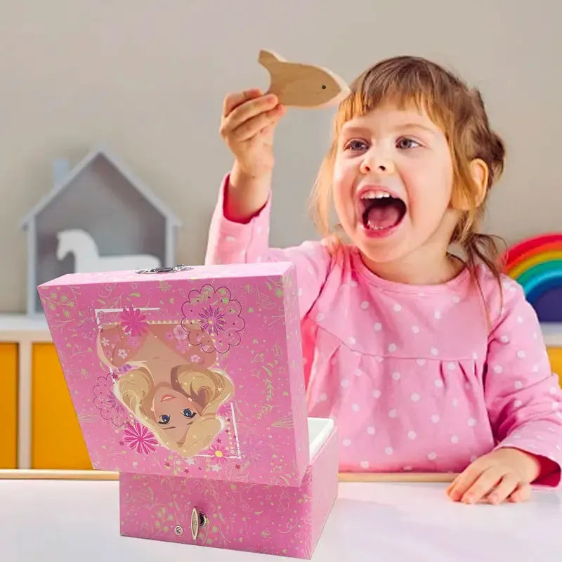 3. It uses a precise and high-quality music movement, no battery is required, and you can easily enjoy music by just winding the clockwork up. After opening the jewelry box, the dancing girl will spin to the music.