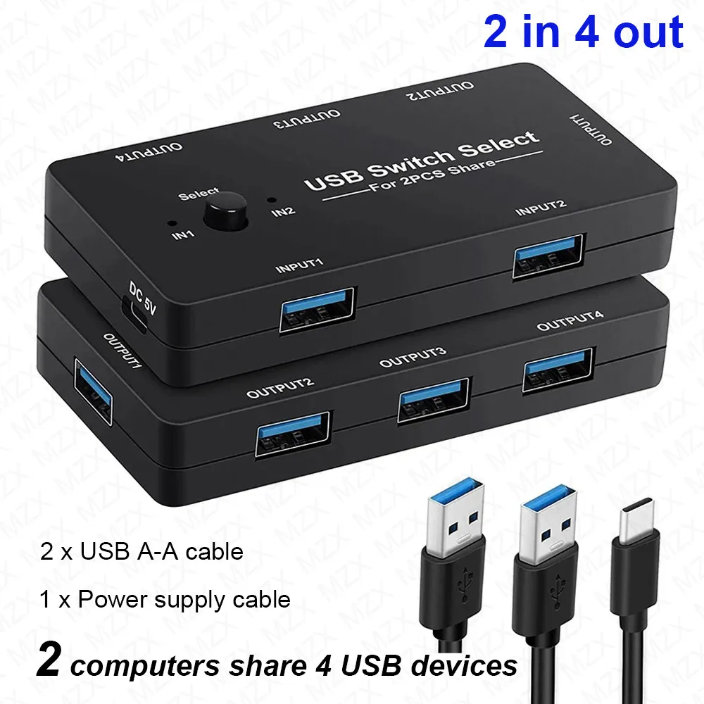 MZX USB Switch KM Switcher Selector KVM 2.0 Hub 2 Computer Laptop PC Desktop Accessories Share Printer Keyboard for Macbook Hubs, USB 3.0 Switcher KM Switch Selector 4 Computer Laptop PC Desktops Hub Splitter Accessories KVM Box Share Printer Mouse Keyboard U-flash USB 3.0 Switch KM Selector 2 Computer Laptop PC Host Sharing 4 USB Devices KVM Switcher Box Share Printer Mouse Keyboard U-flash U disk flash hard driver hdd ssd for Macbook Pro Keyboard Mouse U disk flash hard driver hdd ssd