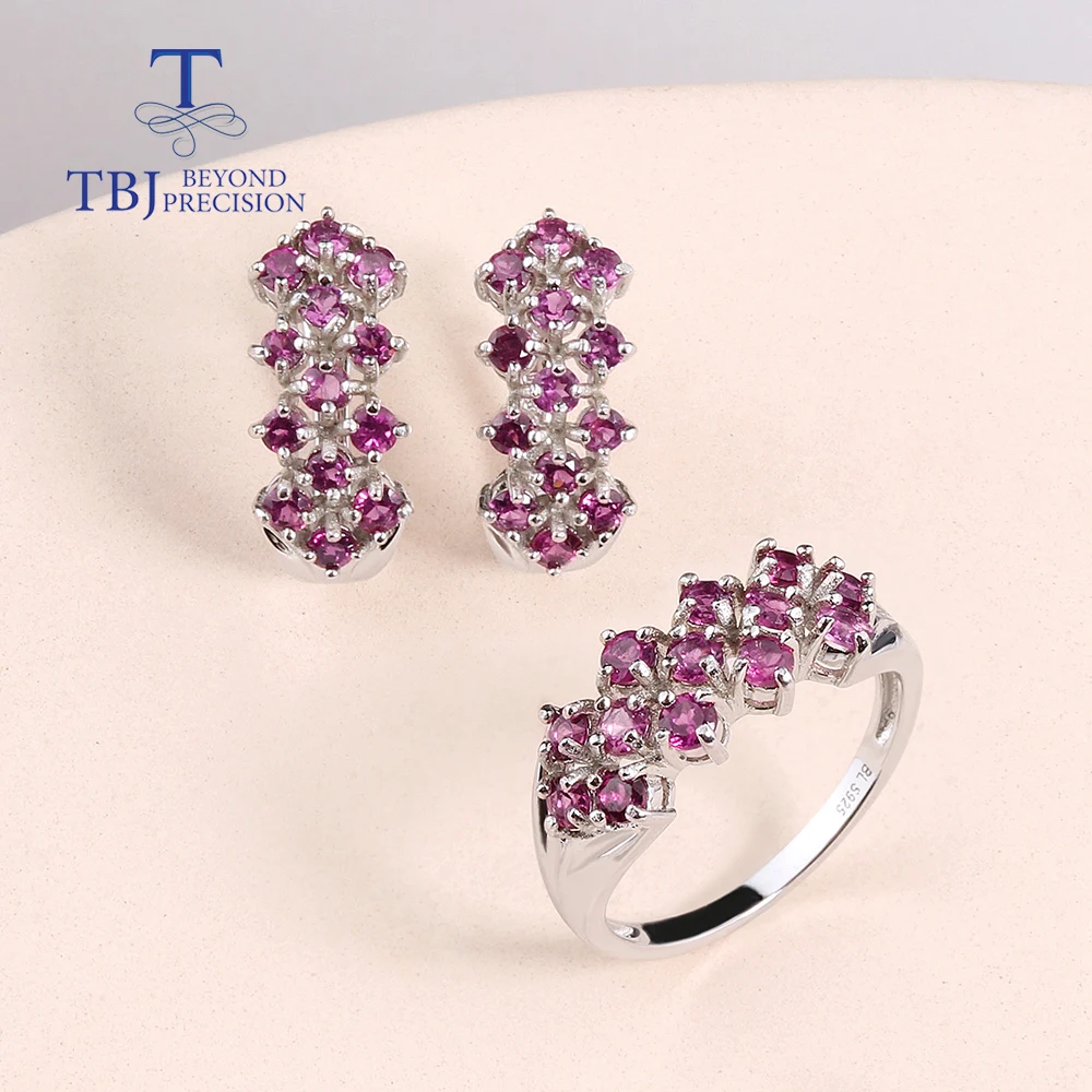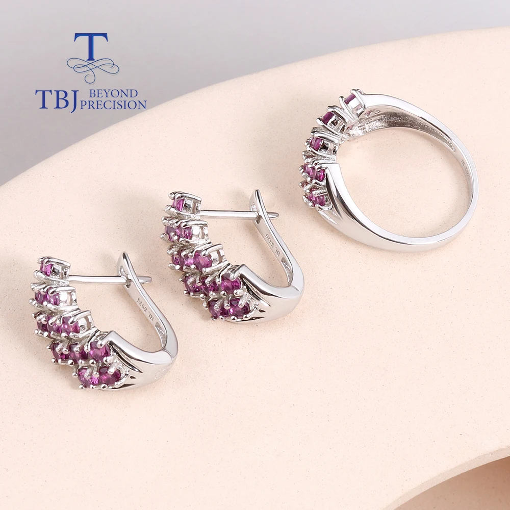 Natural Rhodolite Garnet Light luxury design Ring Earrings Jewelry set Women 925 sterling Silver fine jewelry