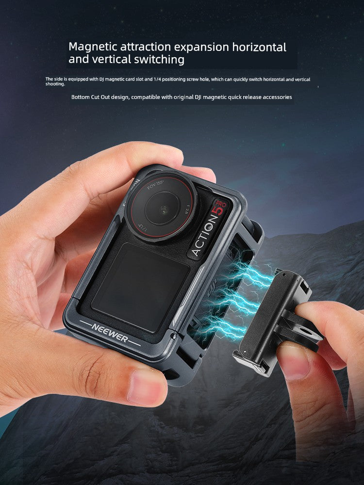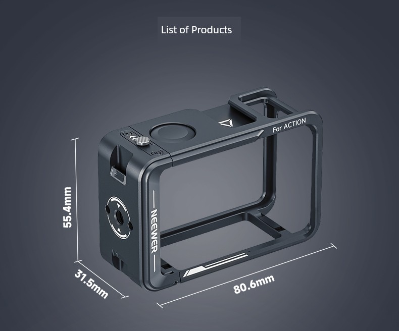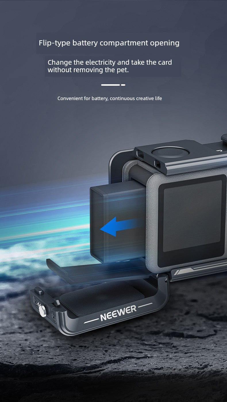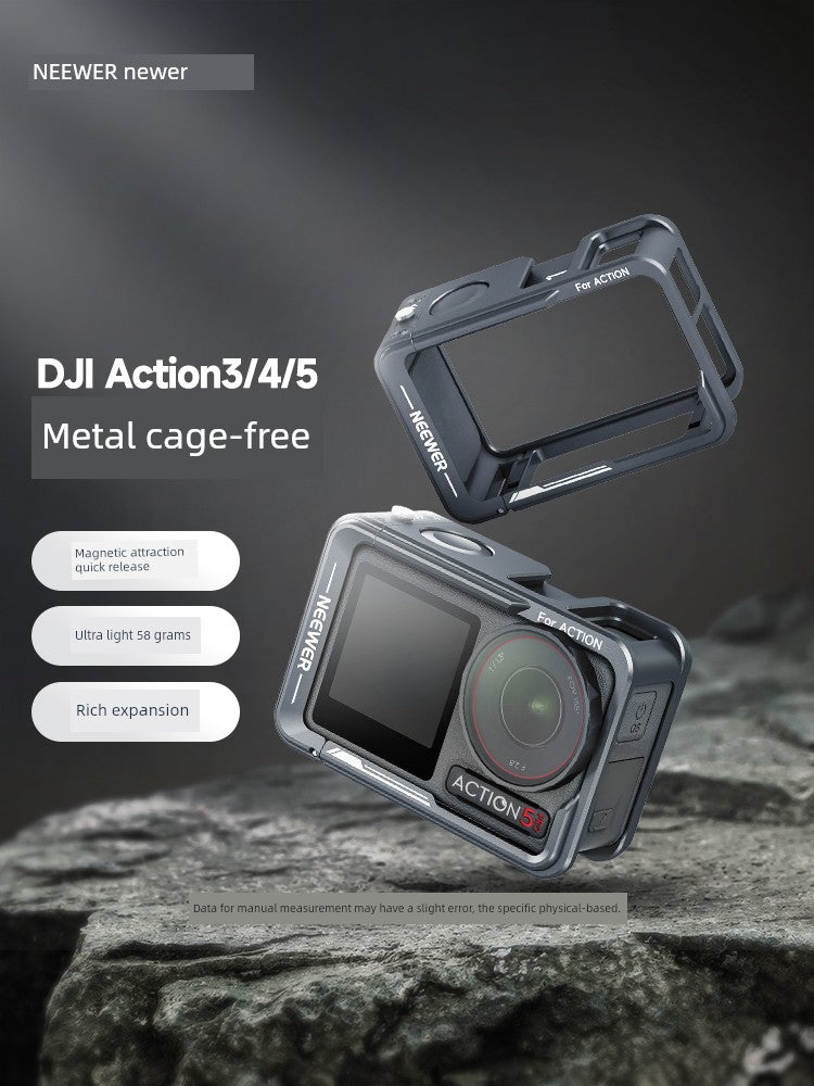 Neewer Cage for Dji Action 6/5 Pro/4/3 Metal Protective Frame Action Camera Anti-Drop Heat Dissipation Side-Open Quick Release Protective Selfie Video Cycling Skateboard Accessories