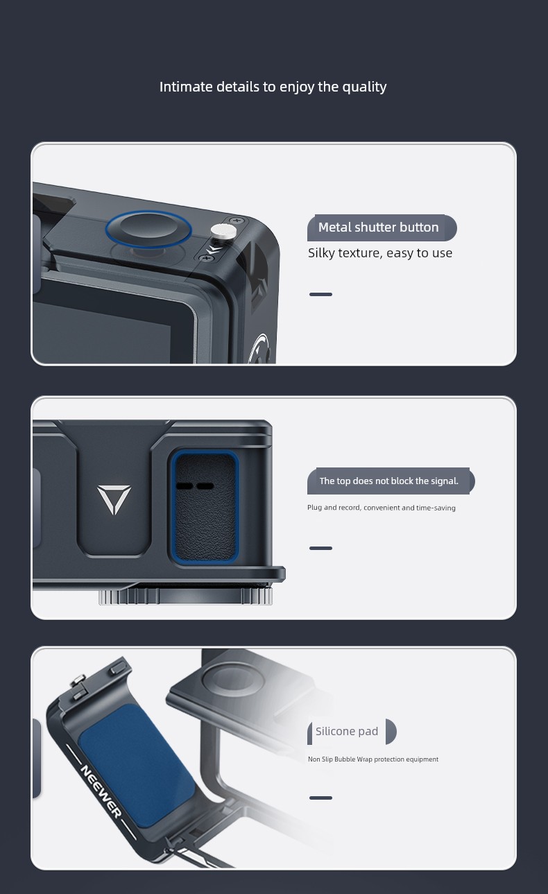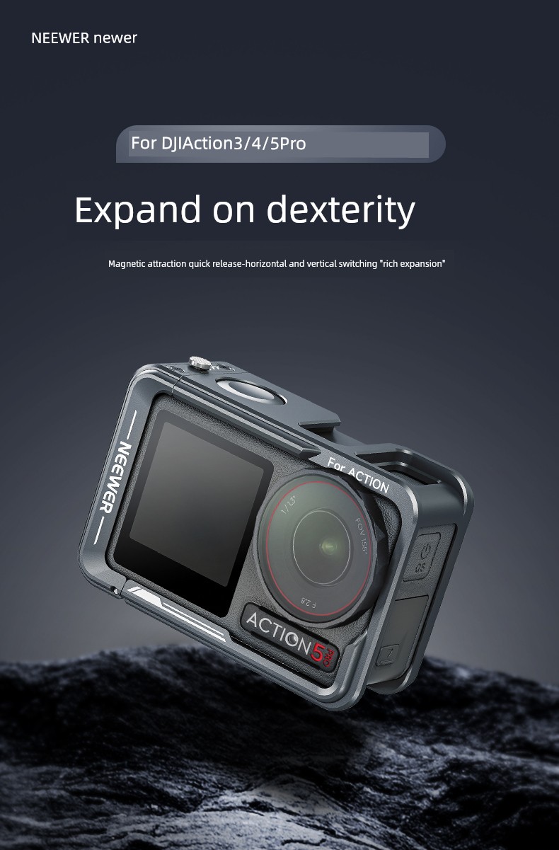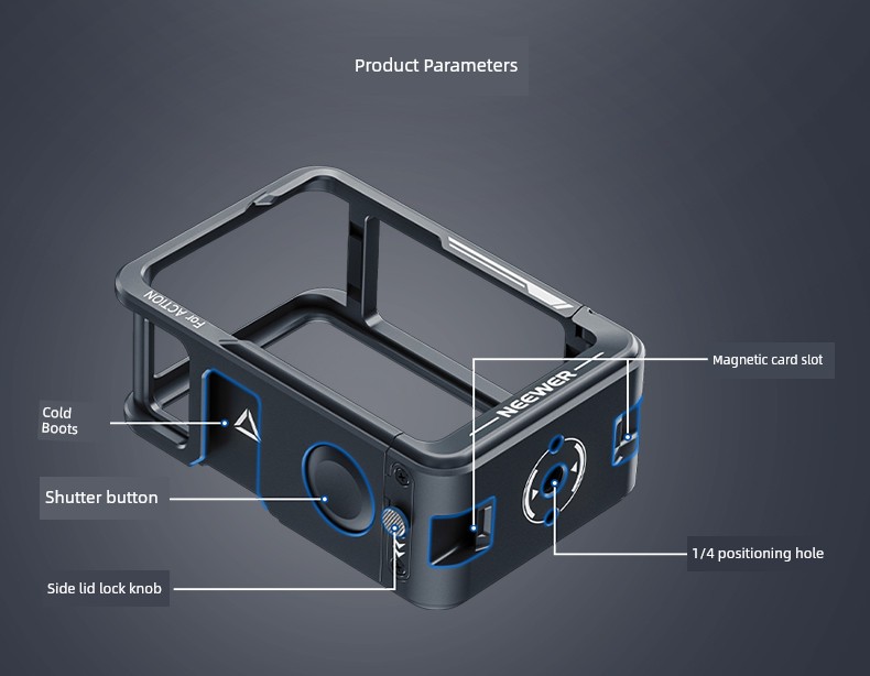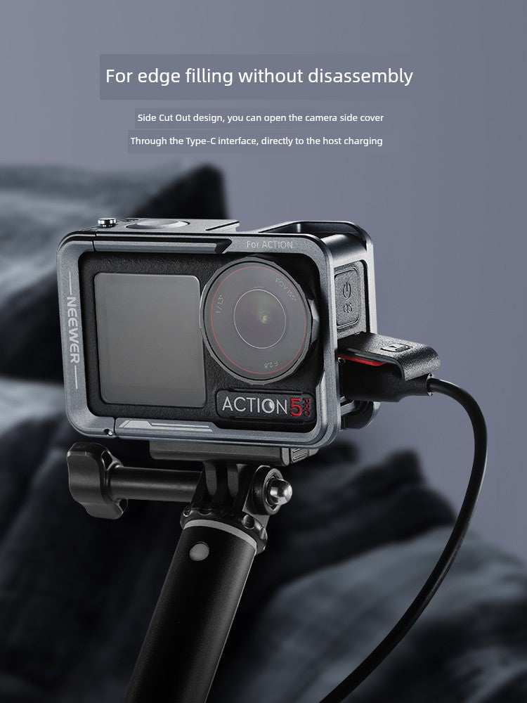 Neewer Cage for Dji Action 6/5 Pro/4/3 Metal Protective Frame Action Camera Anti-Drop Heat Dissipation Side-Open Quick Release Protective Selfie Video Cycling Skateboard Accessories