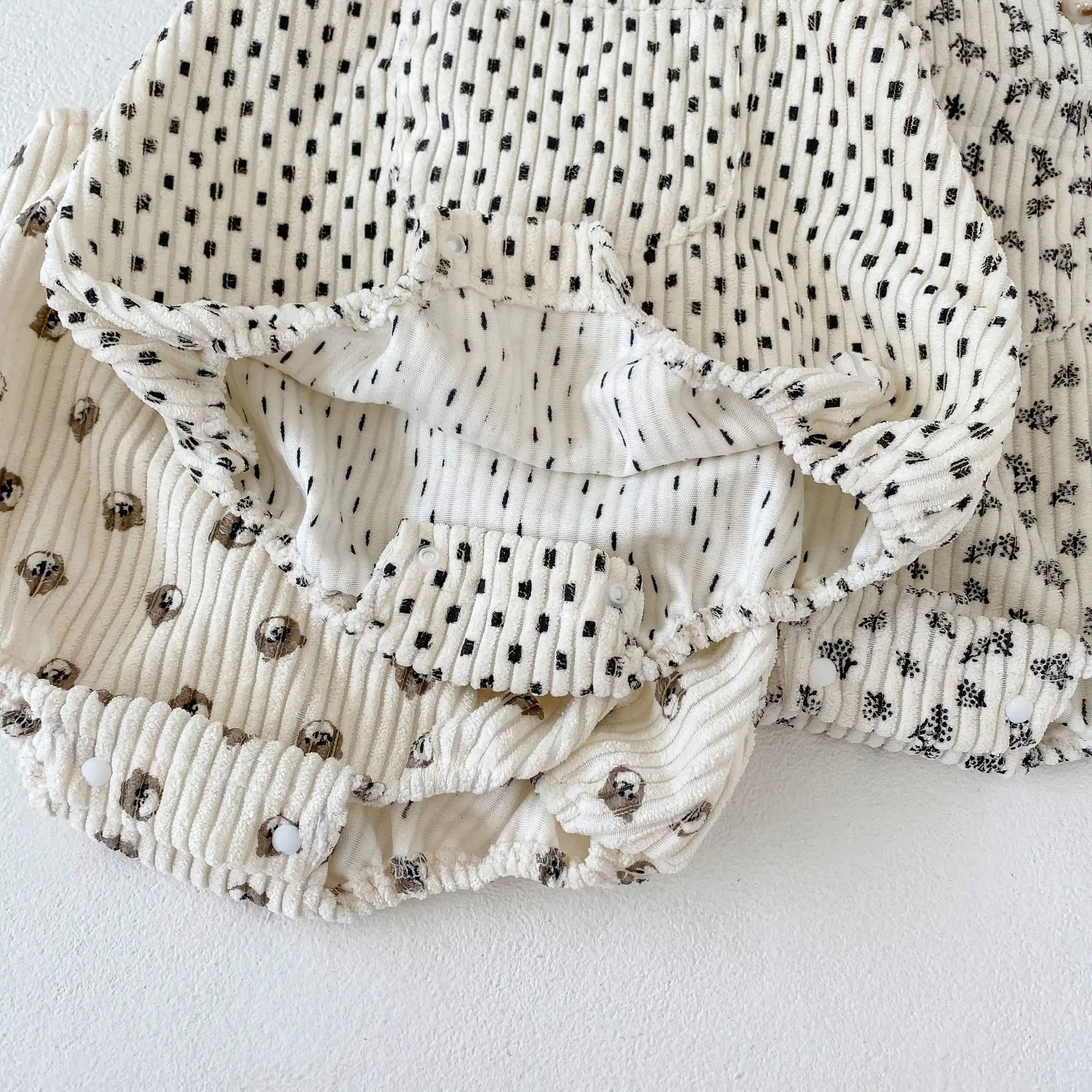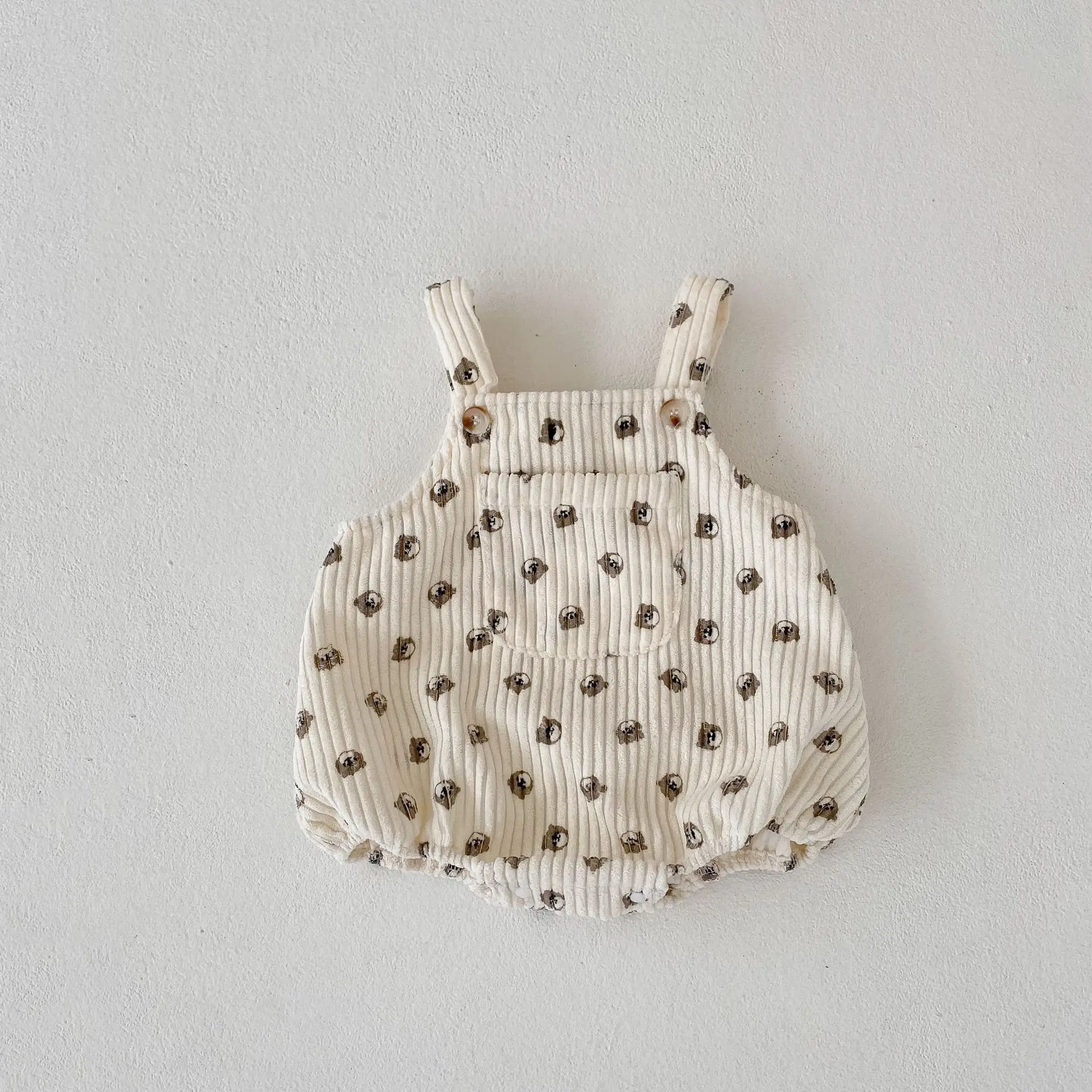 New autumn baby clothing for 0-3 years old, trendy jumpsuit for boys and girls, cute printed shoulder strap jumpsuit