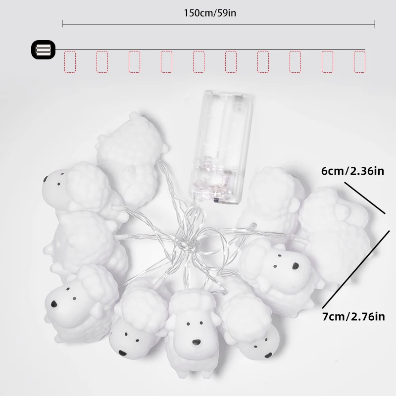 New LED Rubber Coated String Lights for Kids Room Decor-Cute 3D Sheep Animal Shaped Night Light,Birthday Nursery Wall Decoration