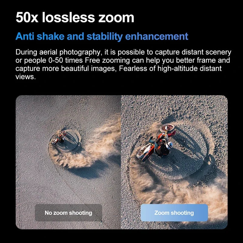 Up/down/forward/backward/left and right turn/left flight/right flight/one-key landing/one click take off/light control/obstacle avoidance/optical flow hover/speed regulation/one click 360°Flip/trajectory flight/120° Wide-angle shooting angle/hd smooth video direct output/flight fine-tuning/50x lossless zoom