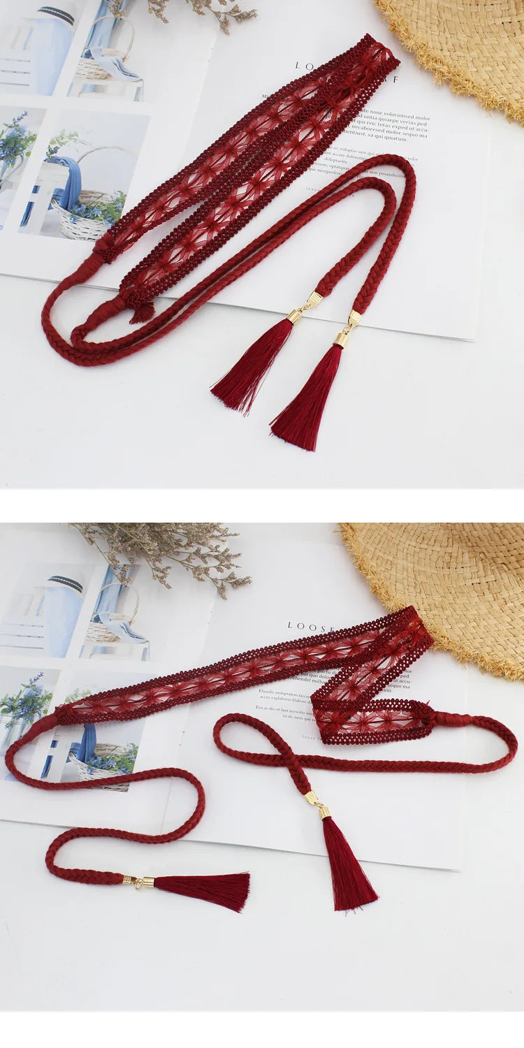 New Women Woven Tassel Belt Braided Waistband Boho Girls Thin Waist Rope Knitted Waist Belts for Dress Waistbands Accessories
