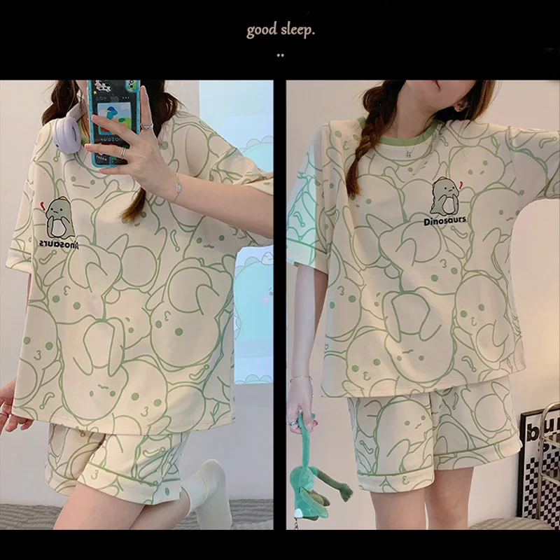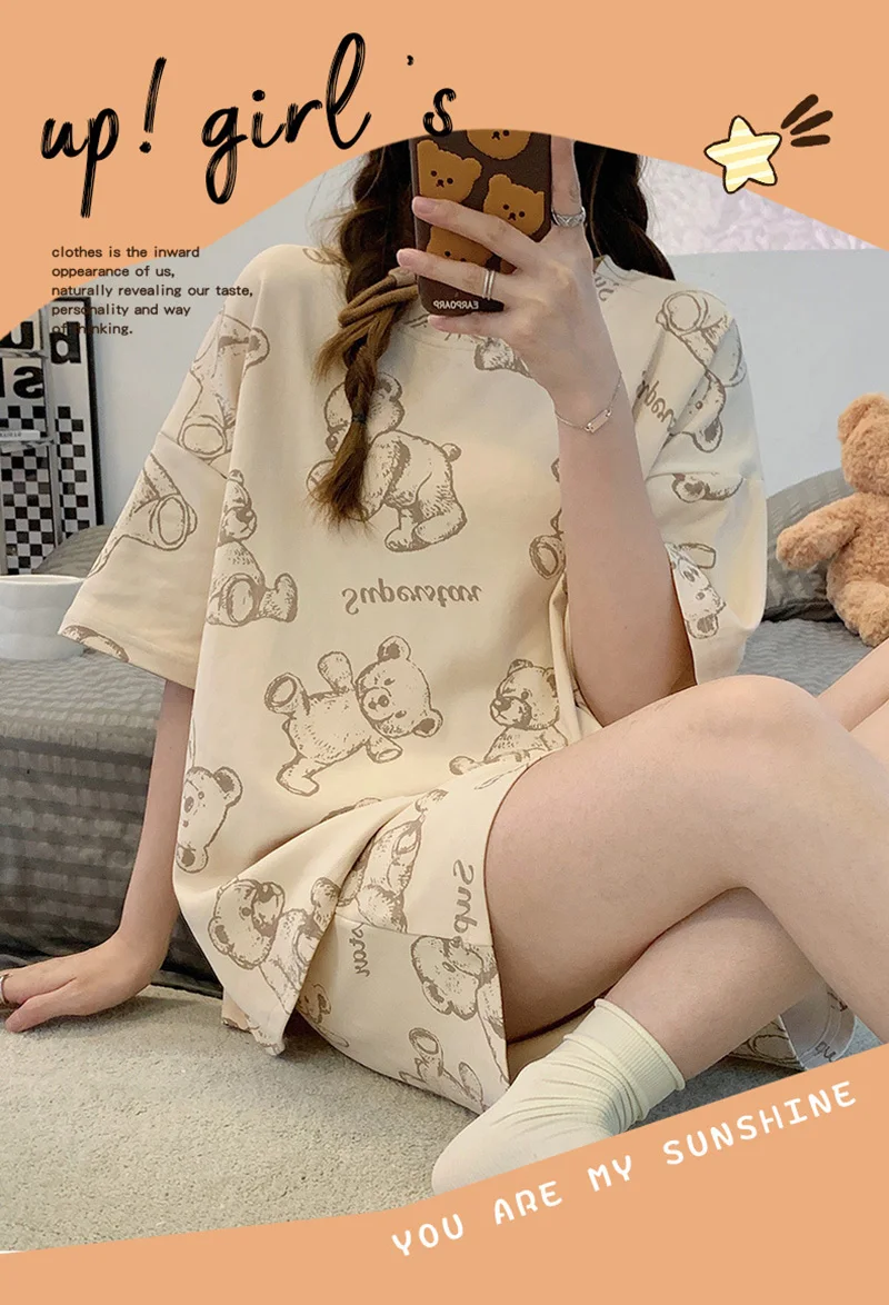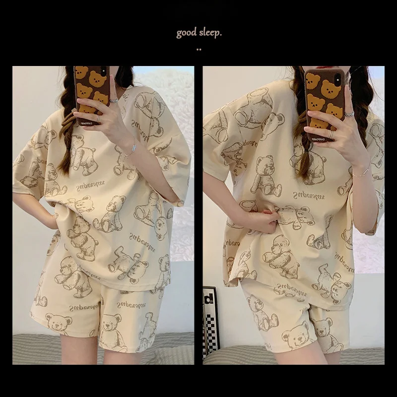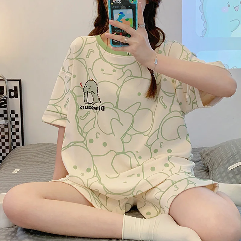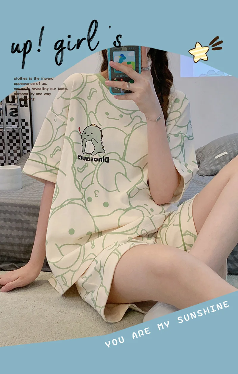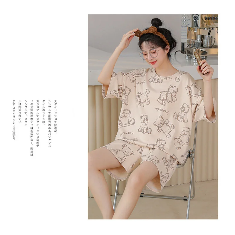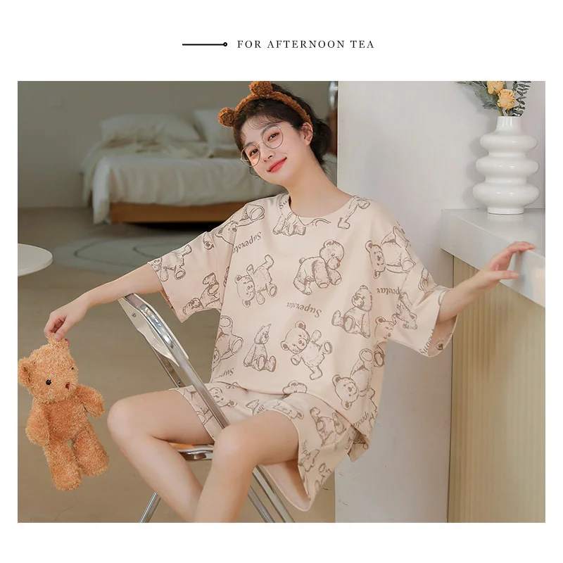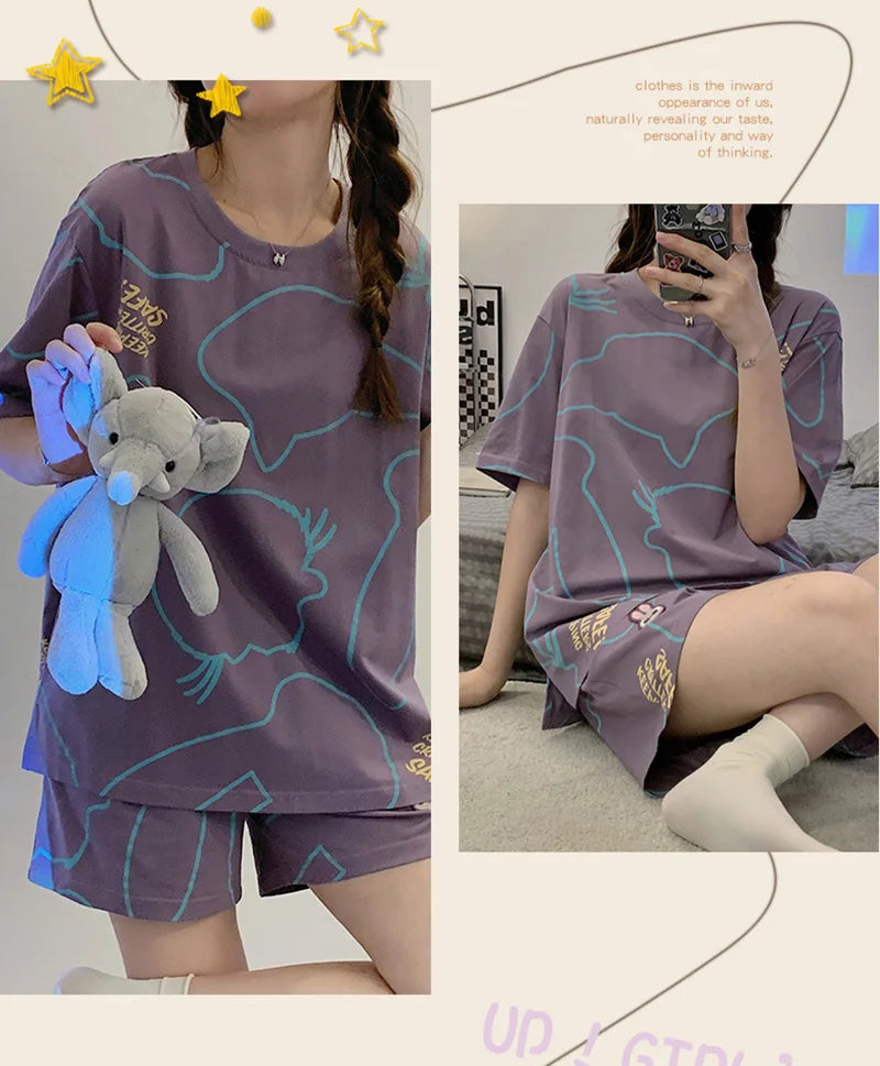 Name: Women's Pajamas,Two-Piece,Summer,Thin Section,Short-Sleeved,O-neck,Cute,Comfortable,Homewear Suit,Cartoon,Casual