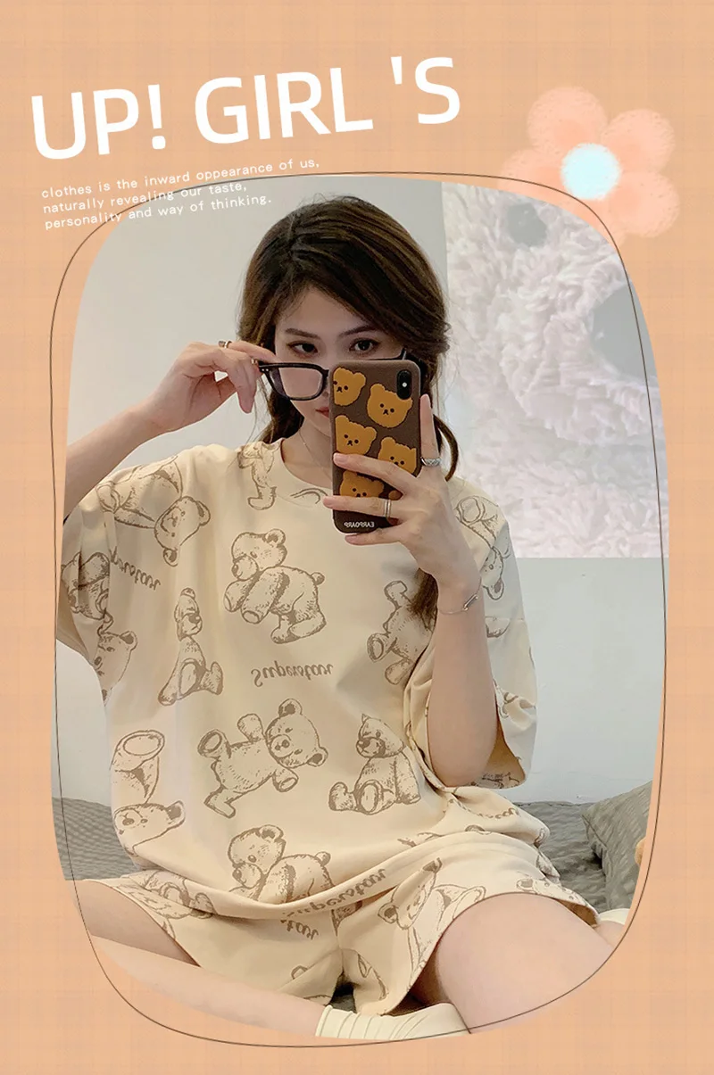 New Women's Pajamas Two-Piece Summer Thin Section Of Short-Sleeved Shorts Cute And Comfortable Milky Outwear Homewear Suit