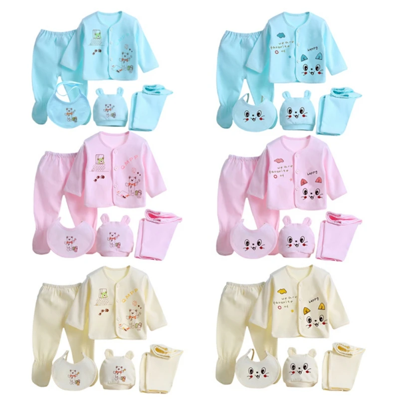 Newborn Baby Suits Boy Girl Clothes Sets Tops Pants Bibs Hats Cotton Cartoon Print Baby Clothing Cute Infant Outfit 0-3 Months
