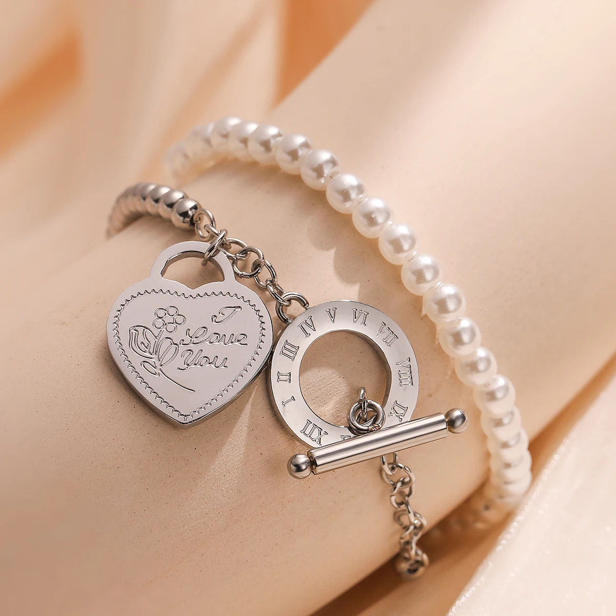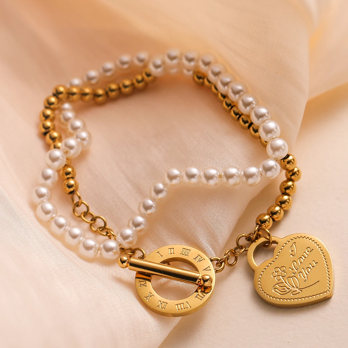 NEWBUY High Quality Non-Fading Stainless Steel Jewelry Silver/Gold Color Pearl Beads Double Layers Bracelets For Women