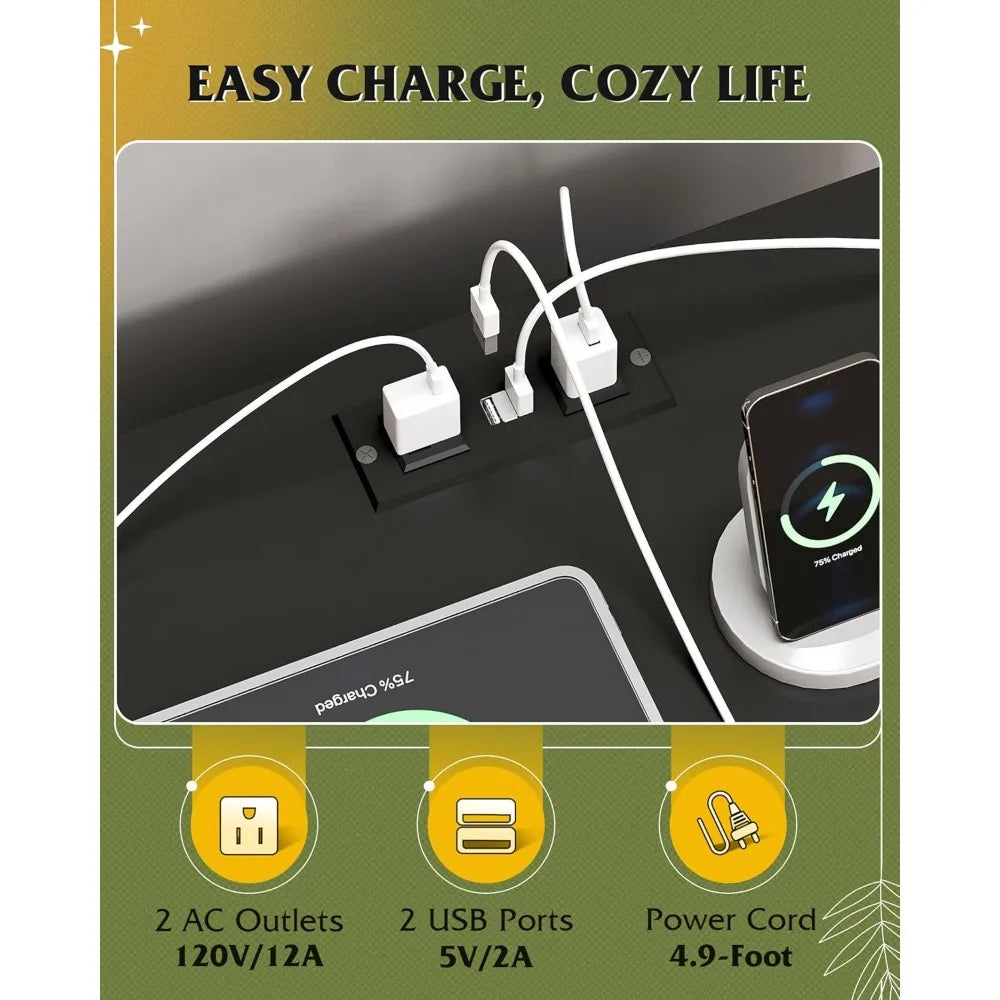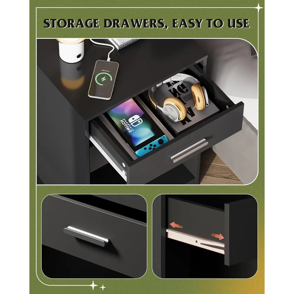 Nightstand Set of 2 with Charging Station,Wood Night Stand Sets with2 Drawers and Open Shelf,Bed Side Tables Bedroom,Living Room