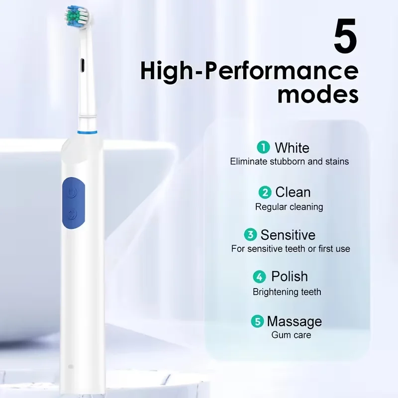 Nwe Rotating Electric Toothbrush, 5 Modes USB Rechargeable Rotary Electric Toothbrush with Timer, Travel Case and 4 Brush Heads