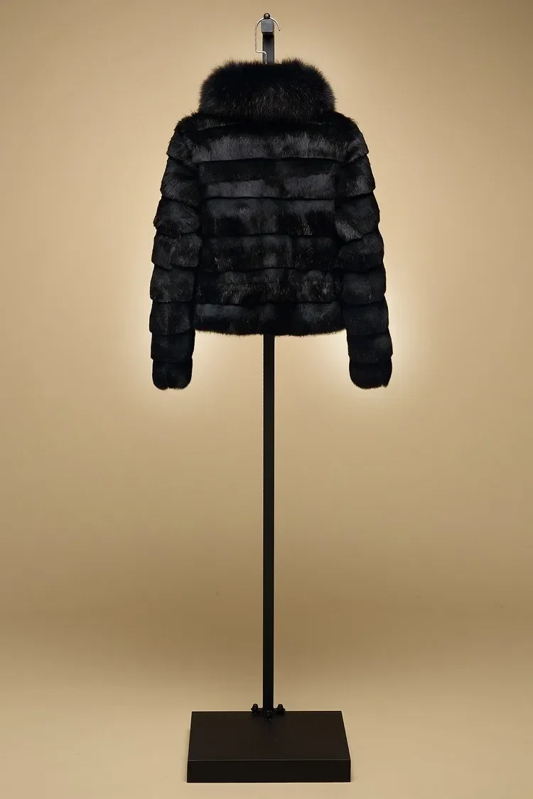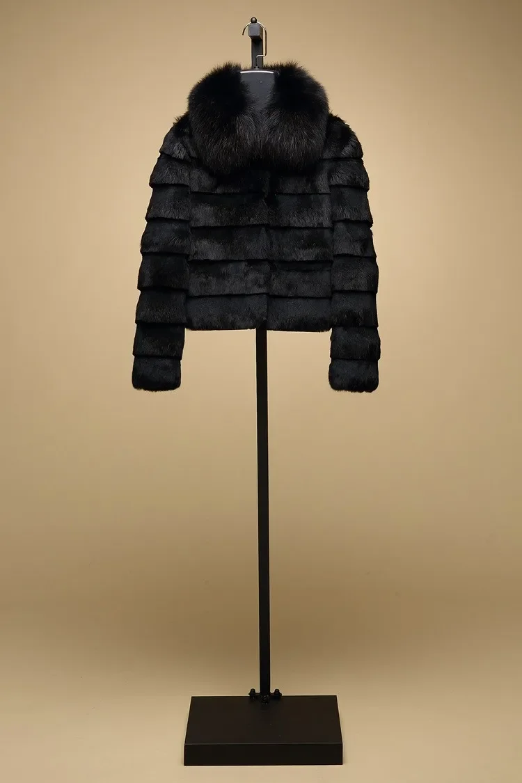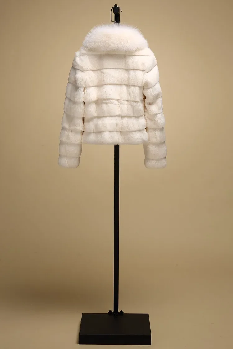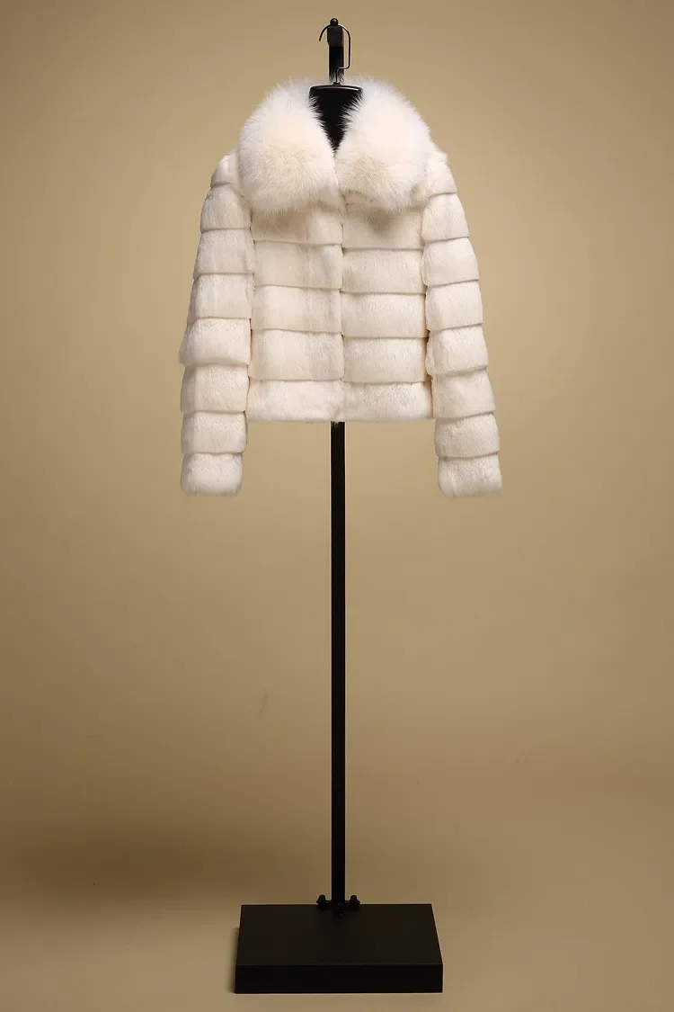 OFTBUY 2024 New Real Rabbit Fur Coat with Fox Fur Collar Women Full Pelt Fox Fur Jacket Winter Rabbit Fur Waistcoat High Street