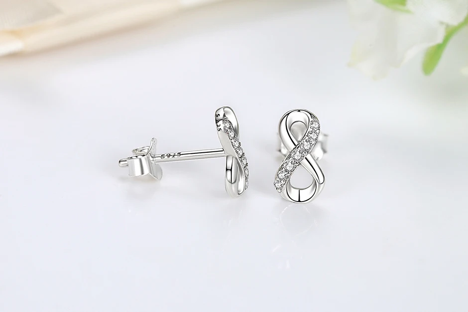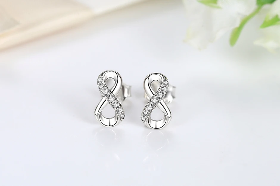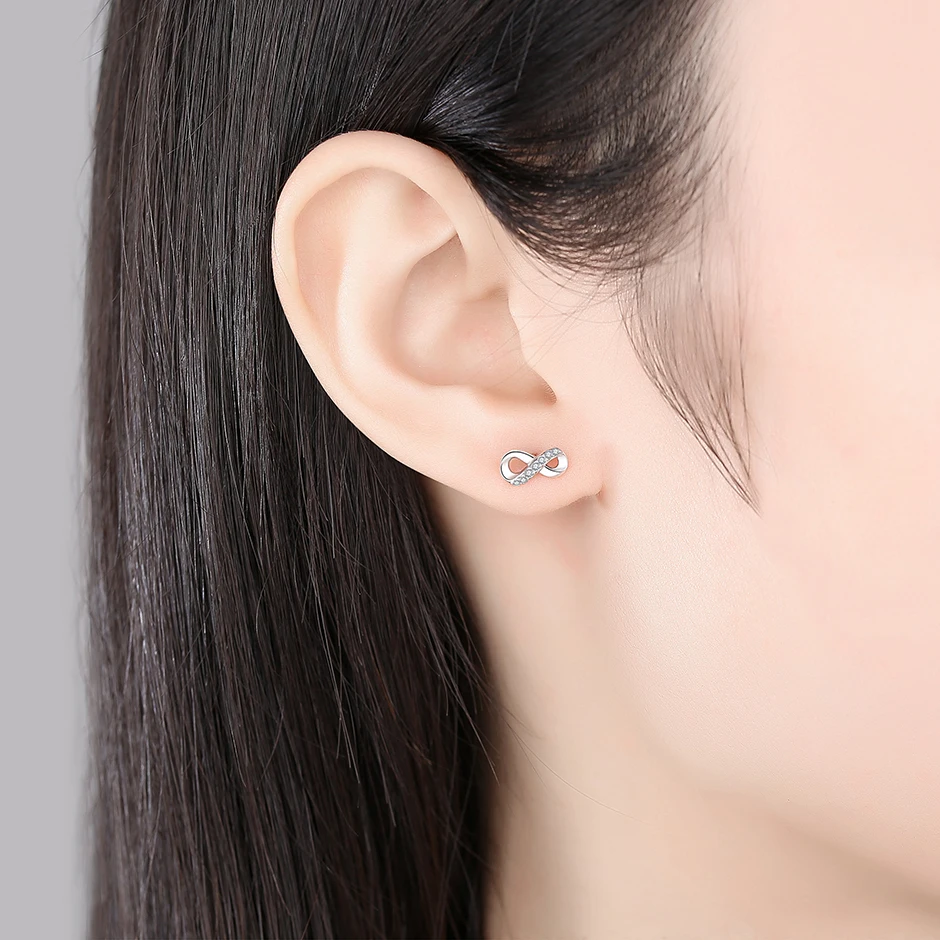 Original 925 Sterling Silver Earrings 2025 Crystal Love Heart Infinity Stud Earings For Women Piercing Rose Gold Gift Jewelry