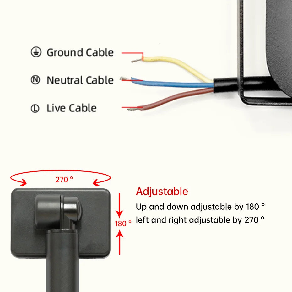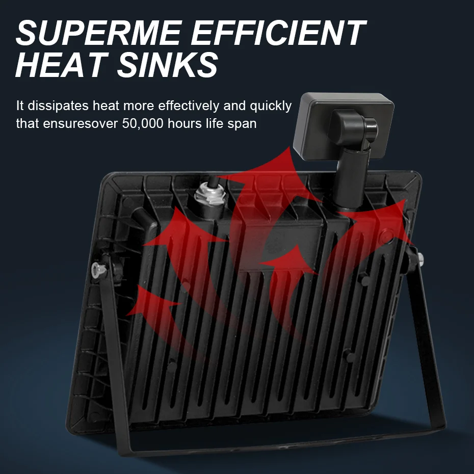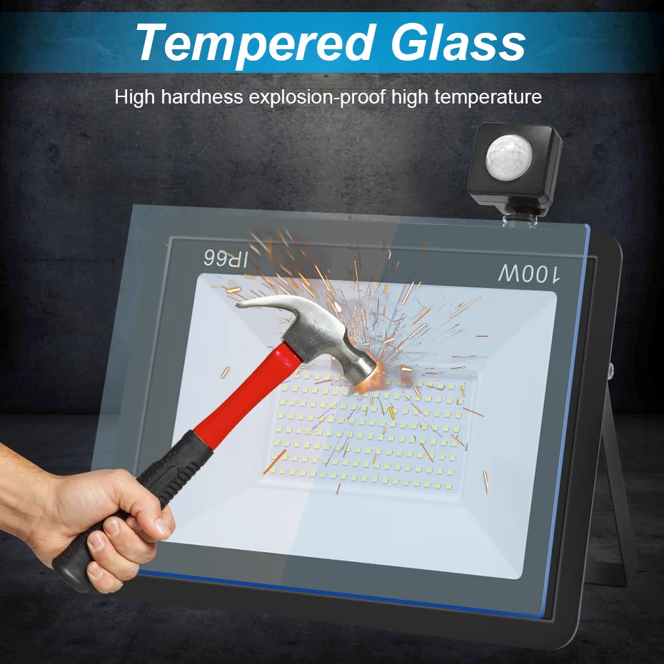 Using die-cast aluminum housing and tempered glass LED floodlight,Waterproof rating of IP66;This ensures that your floodlight will work well in rainy, sleet and snowy conditions, making it the ideal outdoor security light for your garden, yard, garage, dock, stadium, tunnel, etc.