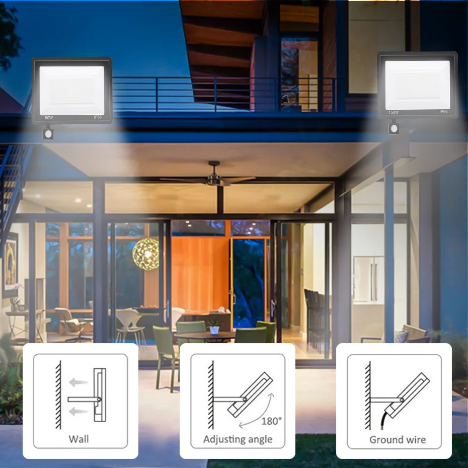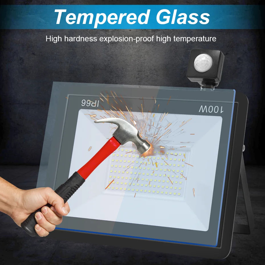 Using high quality 2835 lamp beads as the light source of the floodlight, using 100W power can produce up to 9000LM brightness; high quality body sensor LED floodlight can completely replace the traditional halogen lamp and save more than 85% of electricity, saving your electricity bill.