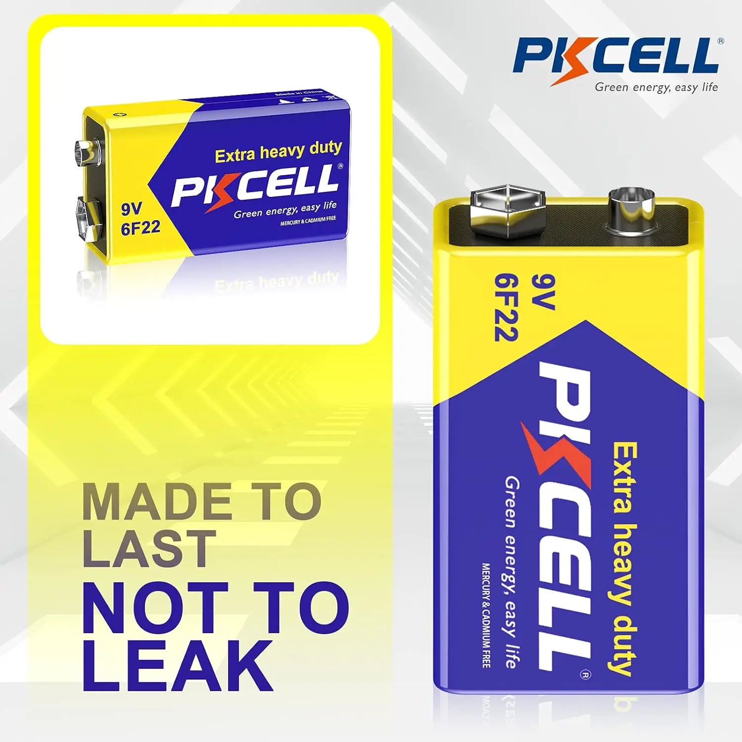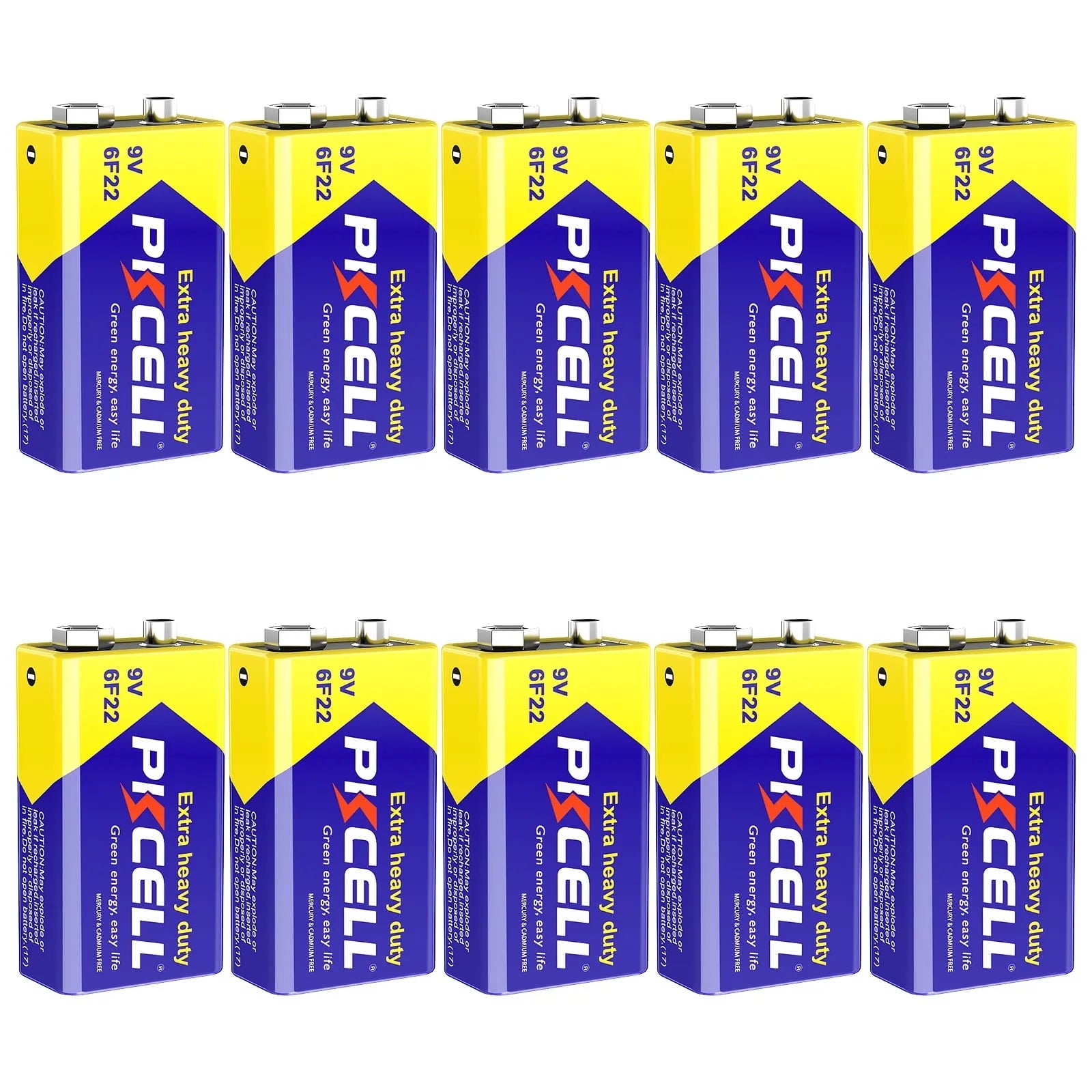PKCELL 10PC 6F22 Battery PP3 9Volt Carbon Batteria Cell Leak-Proof Smoke Detector Batteries EN22 1604AU 6AM6 Zinc Carbon Battery