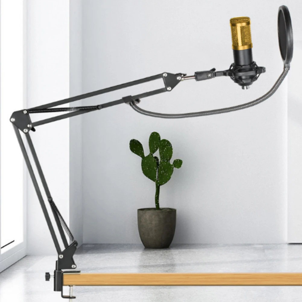 Features: 1. All-in-One Podcasting Equipment: This podcast equipment bundle includes a BM-800 condenser microphone, double-layer pop filter, adjustable suspension scissor arm stand, shock mount, wind foam cap, headphones, power cable, and a live sound card. It's for podcasting, live streaming, content creation, and recording music and short videos. 2. Superior Sound Quality: The podcast equipment bundle utilizes advanced intelligent noise reduction technology and cardioid pickup technology to capture your voice from all angles. The double-layer pop filter and wind foam cap further reduce noise, and the professional DSP chip in the sound card ensures clear and complete sound. 3. Versatile Sound Card: The classic V8 sound card of podcast equipment allows you to adjust four sound modes to meet your blogging needs. It also offers four voice variants (female, male, small voice, monster), and ten special sound effects, adding more fun to your live broadcasts. 4. Powerful Compatibility: The audio interface of podcast microphone bundle has strong compatibility and supports smartphones, PCs, compatible with PlayStation (compatible with PS4, compatible with Xbox, etc.). It is compatible with Windows, iOS, for Android, compatible with OS, compatible with Chrome OS, and more. This podcasting equipment kit can meet the requirements of most setups. Plug and play, no drivers needed. 5. USB Plug and Play Connection of Podcast Equipment Bundle: Simply connect the sound card to your desired device using the cable and headphones, and it will automatically work compatible with or for Windows laptop - no need for phantom power. (Software will be automatically downloaded). We recommend fully charging the battery before first-time use or if the product has not been used for a long time, to ensure normal operation. If the driver does not download automatically, please contact our professional after-sales team, and we will do our best to assist you. Specification: Origin: Mainland China Style: Hanging Microphones Use: Home Studio Transducer: Condenser Microphone Set Type: Multi-Microphone Kits Applicable products: computers, stages, musical instruments Usage: Podcasting, live broadcasting, streaming, and recording music and short videos. Microphone color: black, gold (optional) Sound card built-in battery: lithium battery Frequency response range: 60Hz-15KHz Packing size: 490*435*390mm Gross weight: 1500g Note: Due to the different monitor and light effect, the actual color of the item might be slightly different from the color showed on the pictures. Thank you! Please allow 1-2cm measuring deviation due to manual measurement. ![]() ![]() 1 x Cantilever bracket