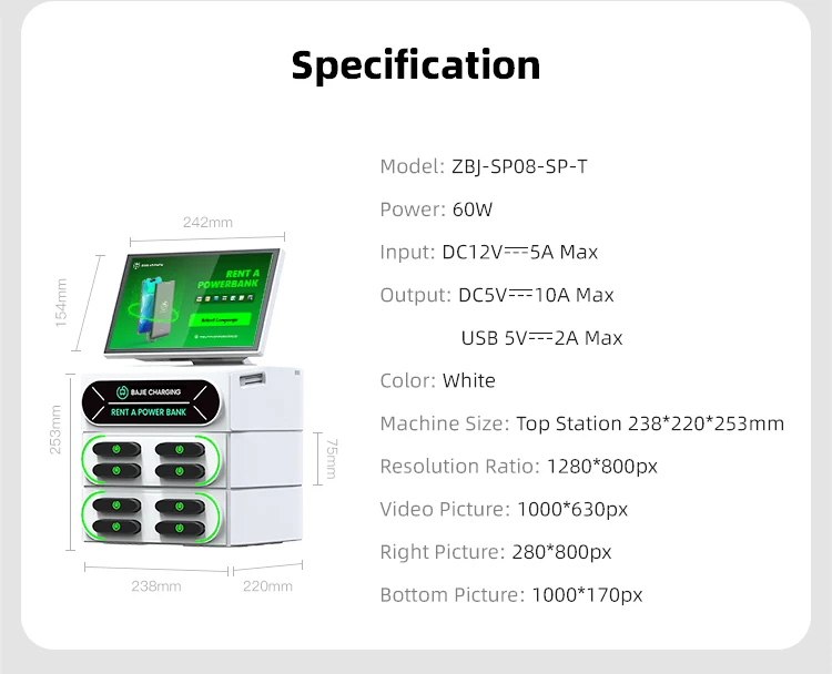 2. The screen can show users how to use the power bank rental machine.