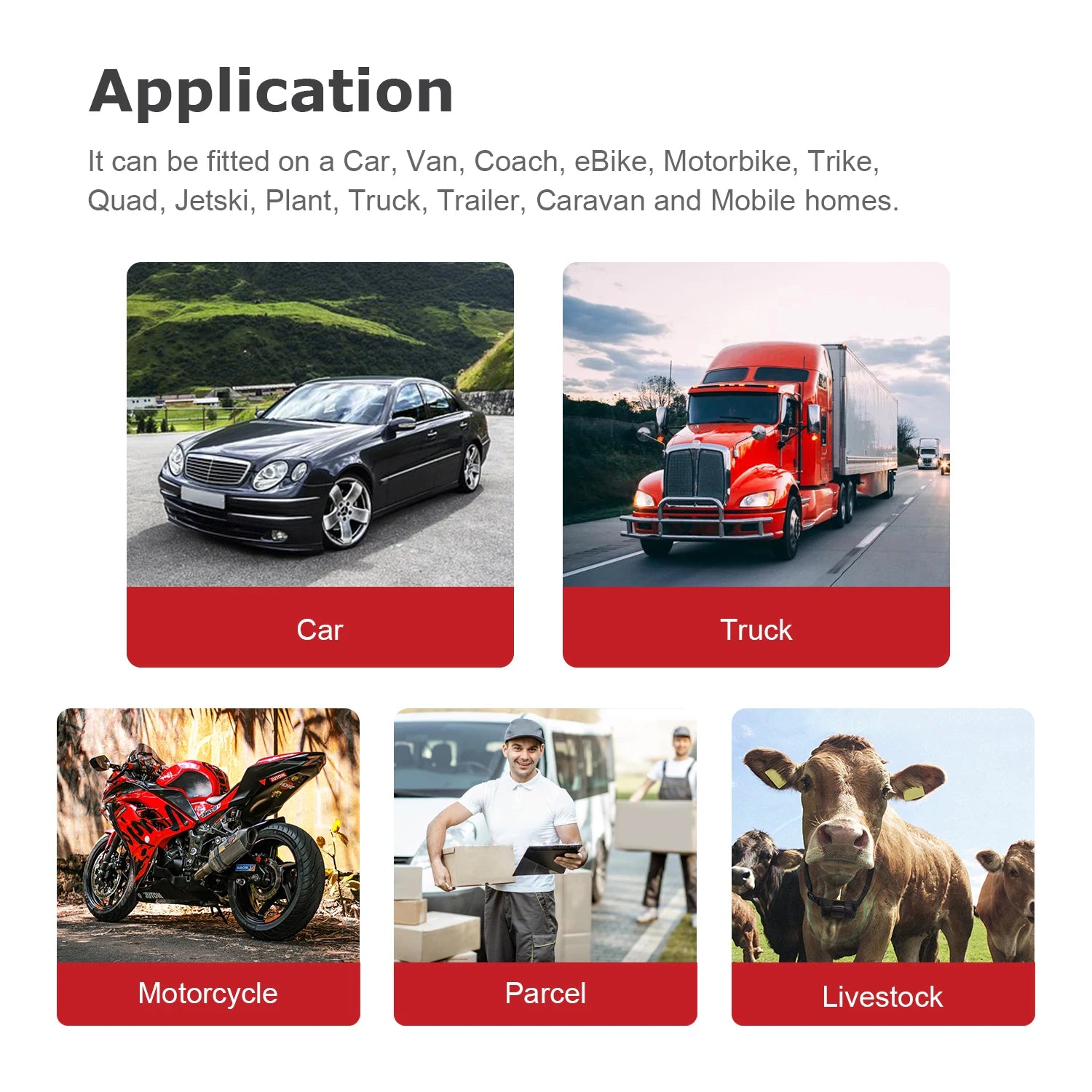 It can be fitted on a Car, Van, Coach, eBike, Motorbike, Trike, Quad, Jetski, Plant, Truck, Trailer,Caravan and Mobile homes, also can be used for livestock tracking.