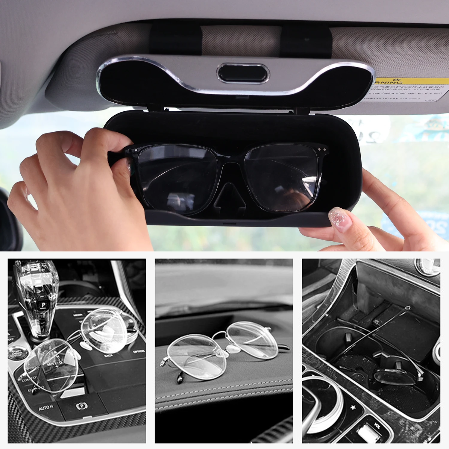 Portable Car Sunglasses Case Holder Sun Visor Clip Storage Box Organizer Glasses Cage Auto Interior Accessories Universal Parts