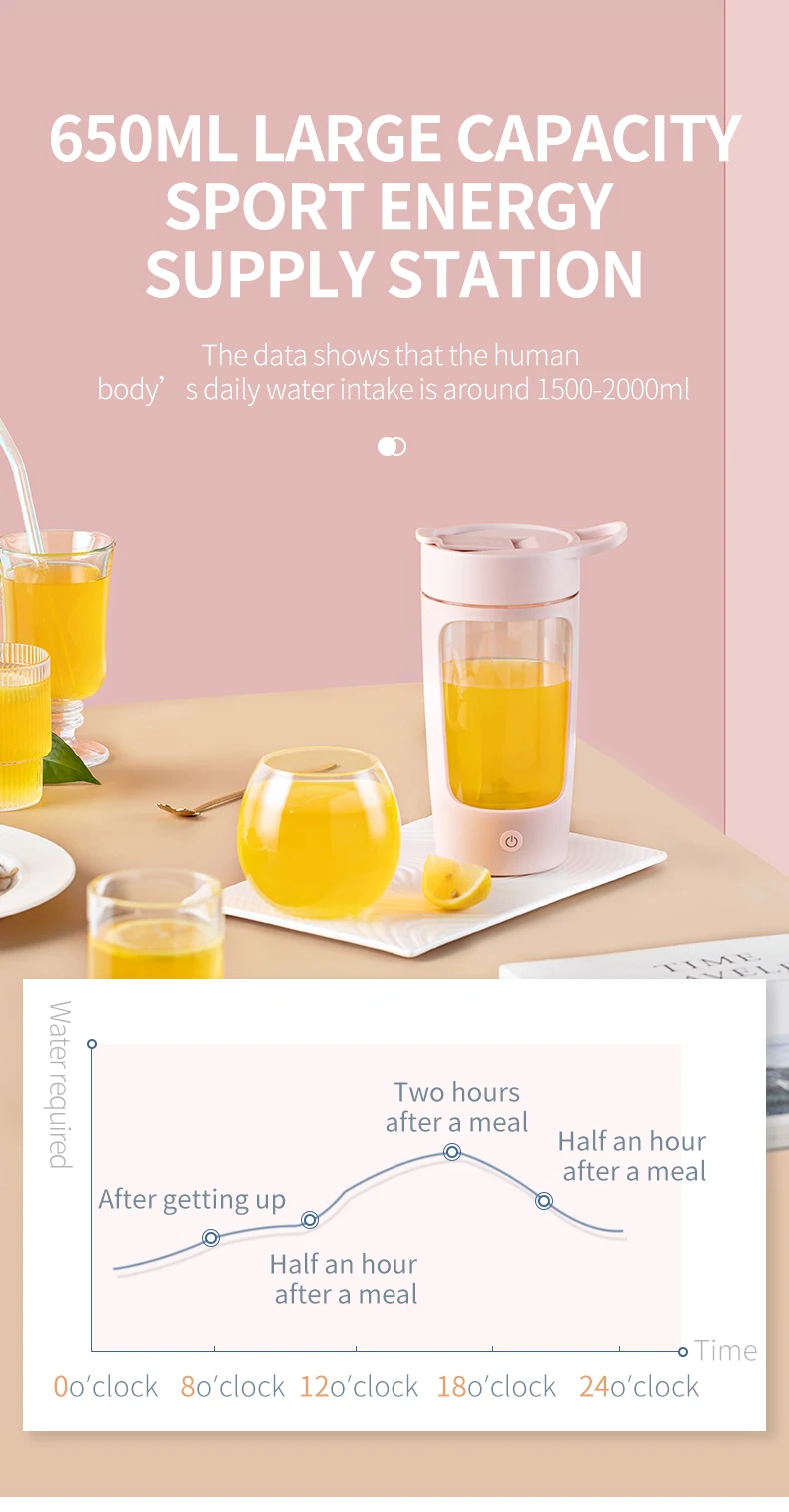 Portable Electric Shaker Bottle Protein Powder Fitness Shaker 650ML Automatic Mixing Tumbler Stirring Mug Sports Water Bottle