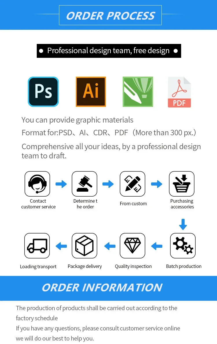 1.Silk Printing 2.Laser Engraving 3.3D/5D printing 4. Heat Transfer(Sublimation) 5.Water Transfer 6.Embossed logo 7.Debossed logo |