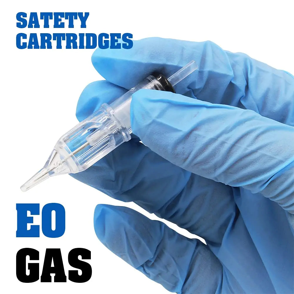 【EMALLA CARTRIDGE NEEDLES】- Tattoo cartridge needles, cartridge 100% E.O Gas sterilized and individually packaged. Needles made of 316 medical grade stainless steel. Membrane mechanism prevents ink spit back. Disposable needle cartridges can switch needle configuration very quickly. Compatible with all standard rotary tattoo machines pen.