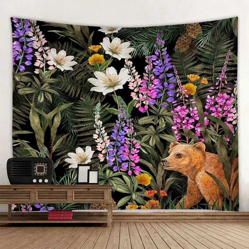 Psychedelic Animals Tapestry Wall Hanging Retro Tropical Plants Background Cloth Boho Hippie Kawaii Home Decor Yoga Mat Sheets