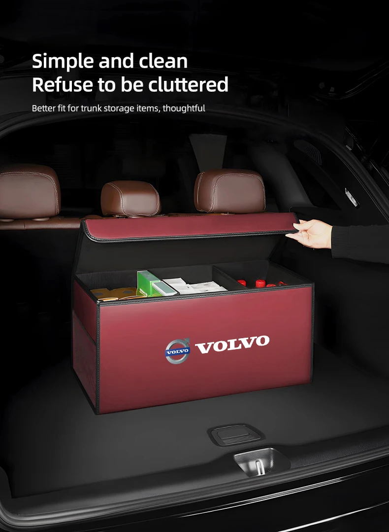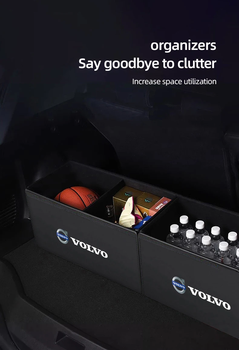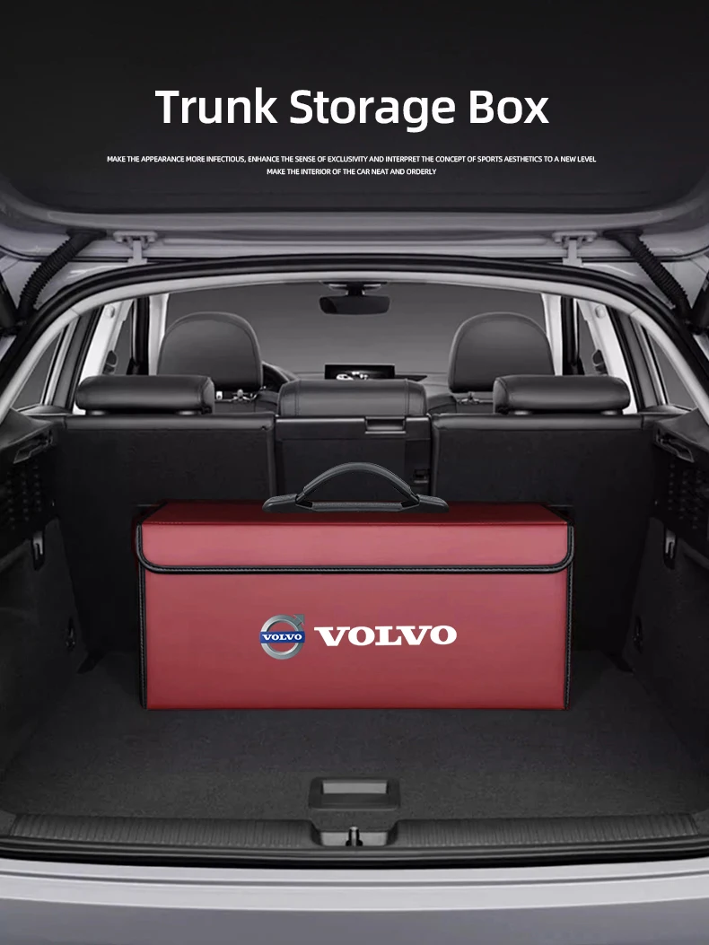Quality Leather Car Organizer Foldable Auto Trunk Storage Box For Volvo ES90 EC40 EX40 EM90 XC90 V90 V60 XC60 V40 S80 S60 S90 C40 XC40 V70 XC70 C30 C70 EX90
