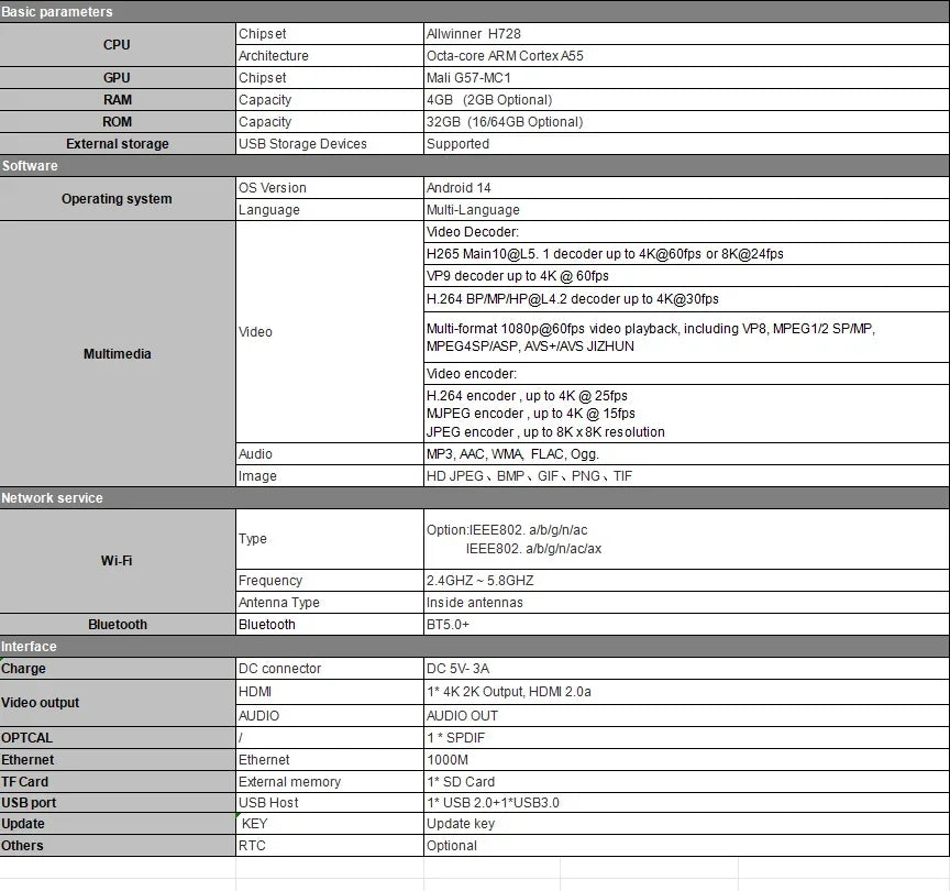 Internal Storage: 16GB eMMC,32GB eMMC,64GB eMMC,128GB eMMC