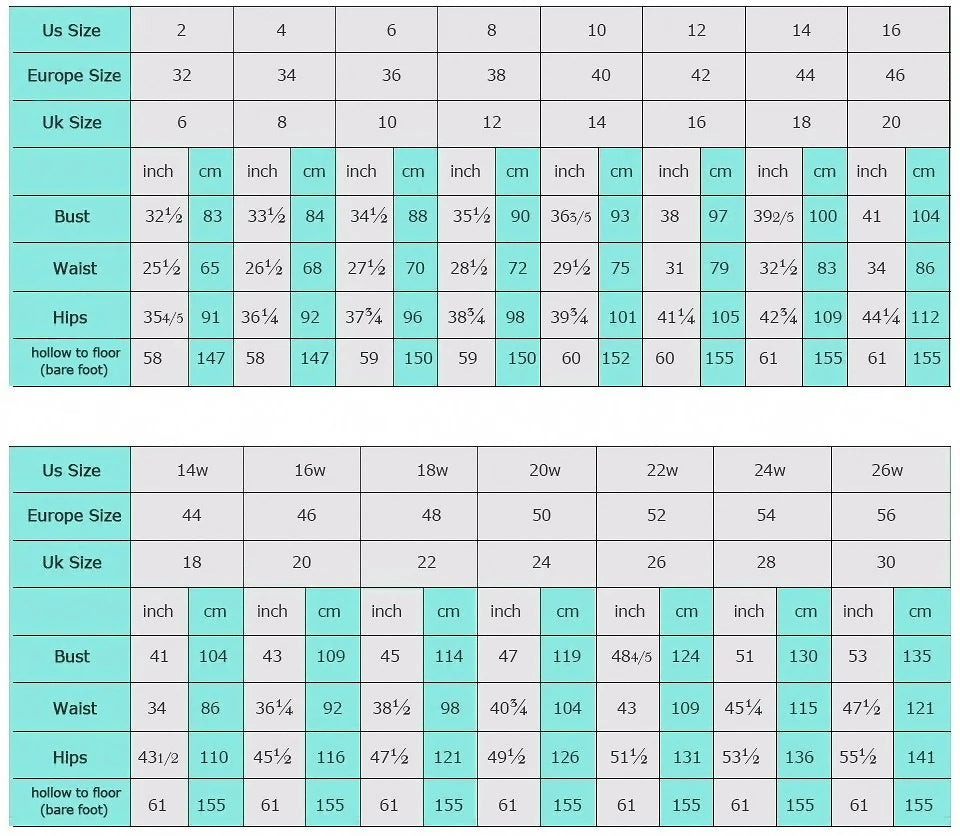 size_info: {"sizeInfoList":[{"length":{"cm":"83","inch":"32.68"},"size":"2","vid":-2},{"length":{"cm":"84","inch":"33.07"},"size":"4","vid":-3},{"length":{"cm":"88","inch":"34.65"},"size":"6","vid":-4},{"length":{"cm":"90","inch":"35.43"},"size":"8","vid":-5},{"length":{"cm":"93","inch":"36.61"},"size":"10","vid":-6},{"length":{"cm":"97","inch":"38.19"},"size":"12","vid":-7},{"length":{"cm":"100","inch":"39.37"},"size":"14","vid":-8},{"length":{"cm":"104","inch":"40.94"},"size":"16","vid":-9},{"length":{"cm":"104","inch":"40.94"},"size":"14W","vid":-10},{"length":{"cm":"109","inch":"42.91"},"size":"16W","vid":-11},{"length":{"cm":"114","inch":"44.88"},"size":"18W","vid":-12},{"length":{"cm":"119","inch":"46.85"},"size":"20W","vid":-13},{"length":{"cm":"124","inch":"48.82"},"size":"22W","vid":-14},{"length":{"cm":"130","inch":"51.18"},"size":"24W","vid":-15},{"length":{"cm":"135","inch":"53.15"},"size":"26W","vid":-16},{"length":{"cm":"Bust","inch":"Bust"},"size":"Custom Size","vid":-17}]}