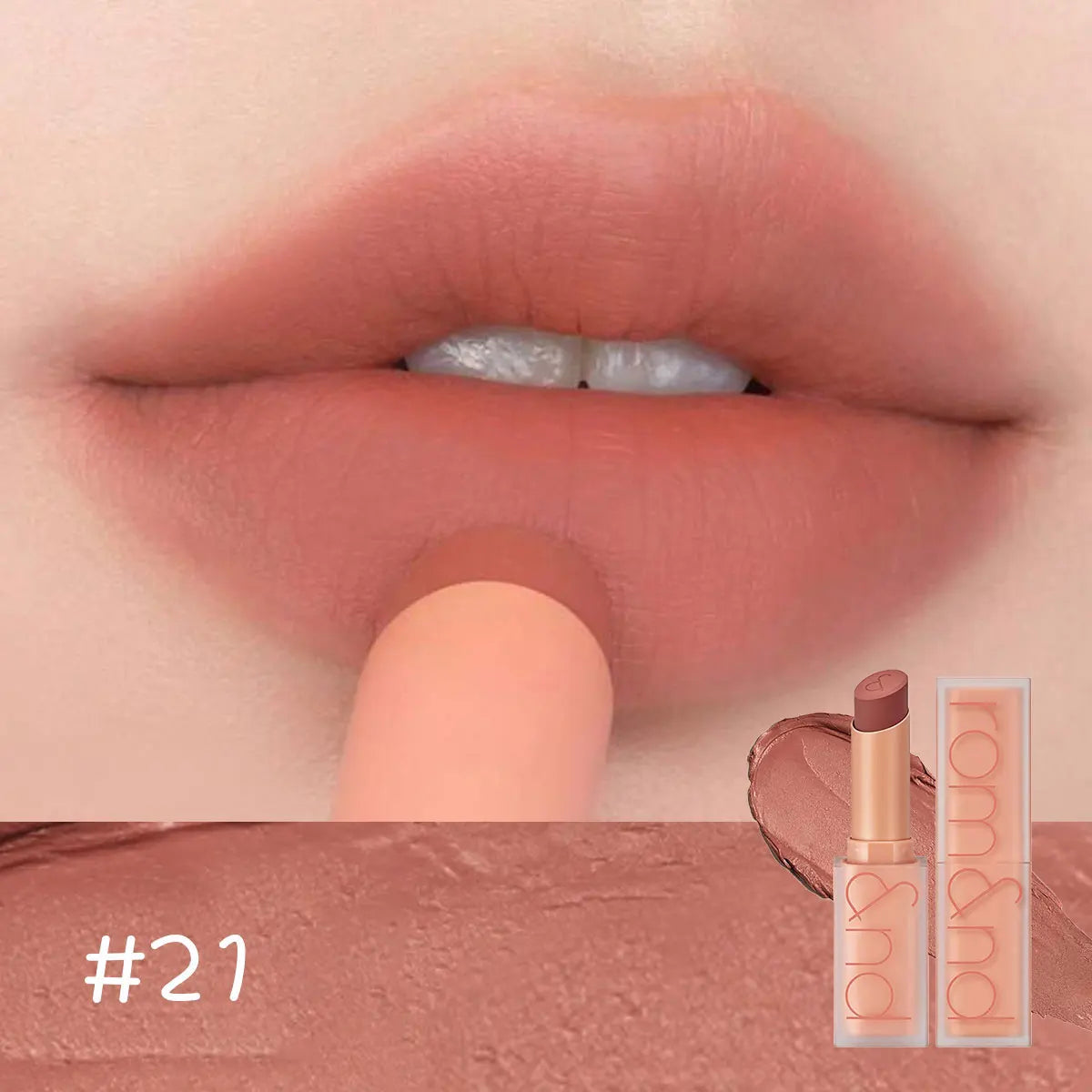 Discover the perfect matte lip with the rom&nd Zero Matte Lipstick collection, featuring 10 carefully curated shades designed to suit every skin tone and occasion. This lightweight, velvety formula glides on smoothly without tugging, delivering intense pigment and a soft, blurring matte finish that feels comfortable all day. Enriched with nourishing oils, it avoids the dryness often associated with matte lipsticks, keeping your lips hydrated and smooth. From everyday nudes to bold statement colors, this collection offers versatile shades for both minimalist looks and dramatic makeup styles.