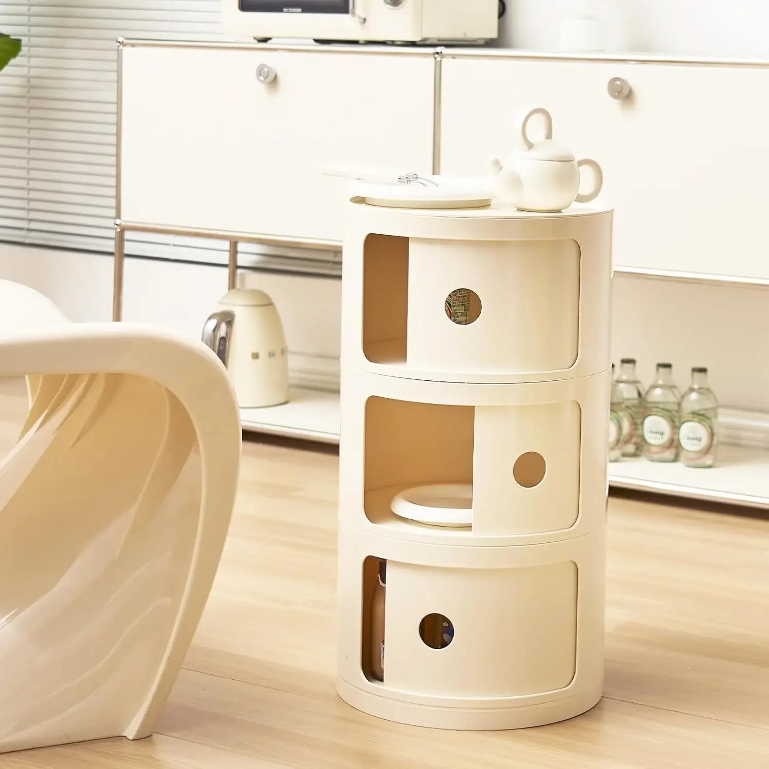 Round Nightstand with 3 Drawers, Modern Style Side Table, Multifunctional End Table Storage Cabinet for Living Room, Bedroom