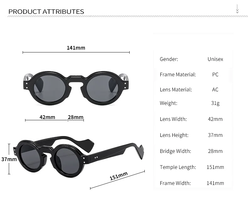 Round Sunglasses Women Men Punk Double Color Shades Retro Rivets Decoration Trending Sun Glasses Clear Lens Frame UV400