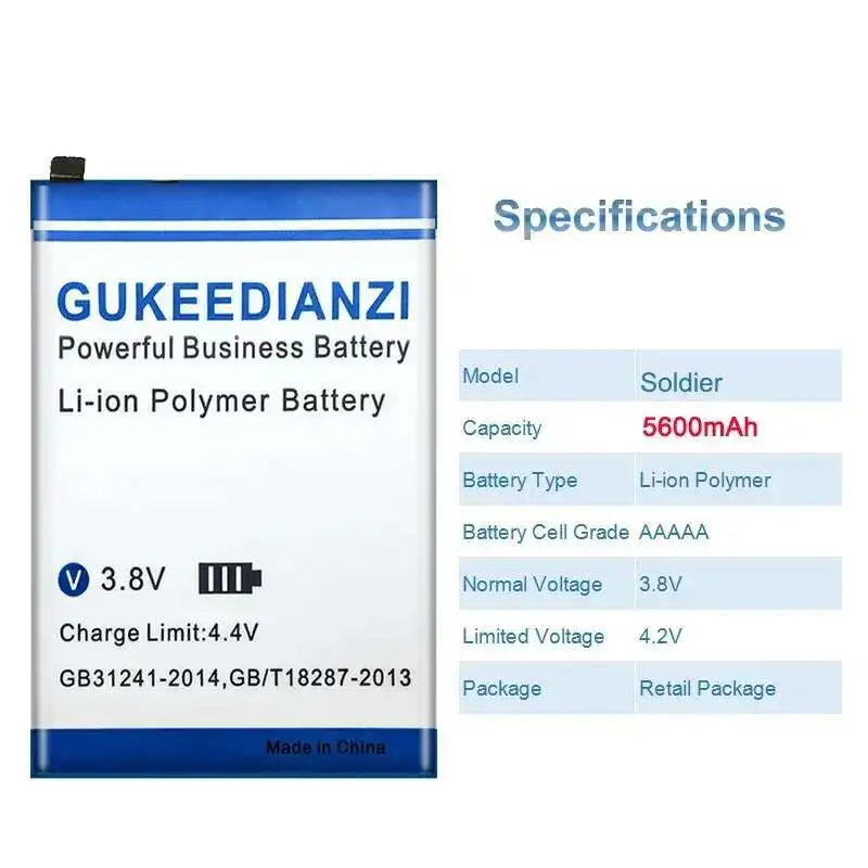 High Capacity & Efficiency Mobile Phone Battery 5600mah For ELEPHONE Soldier Phone 4GB 128GB IP68 Waterproof 5.5" 2K Screen Soldier