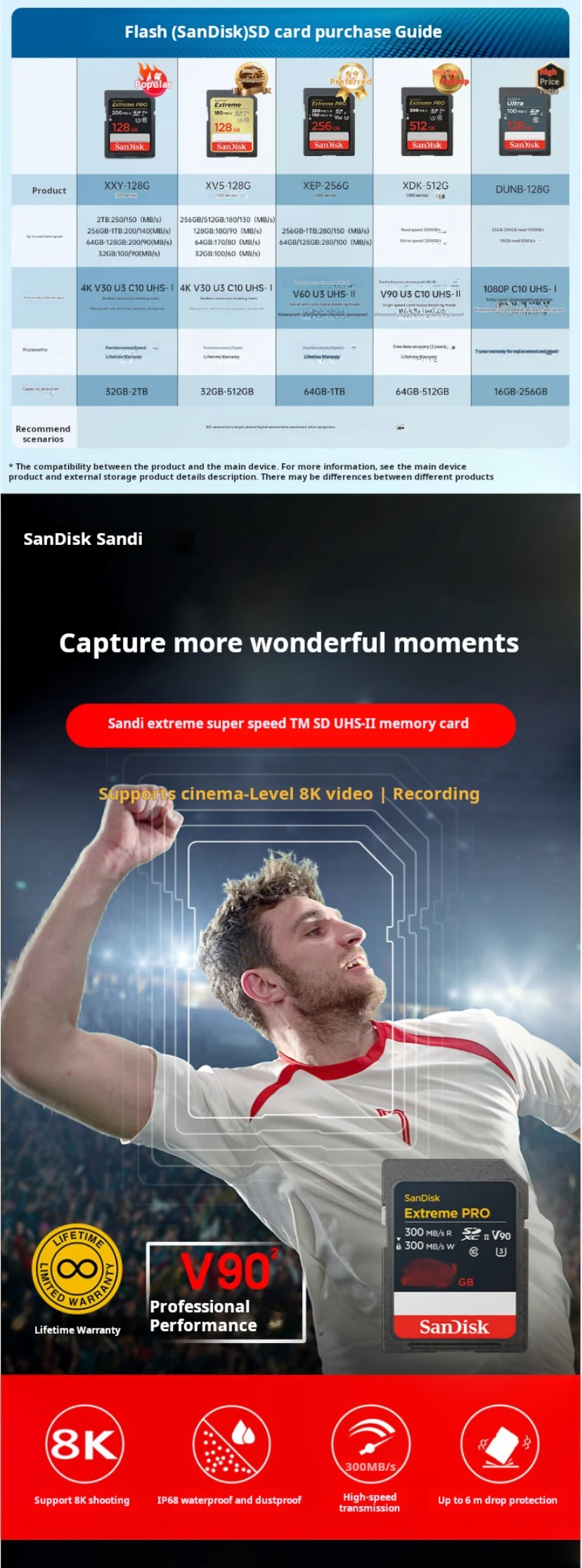 SanDisk 128GB SD Memory Card, V90 8K U3 C10, High-Speed Camera Memory Card, Read Speed 300MB/s, IP68, Cinema-Grade Shooting