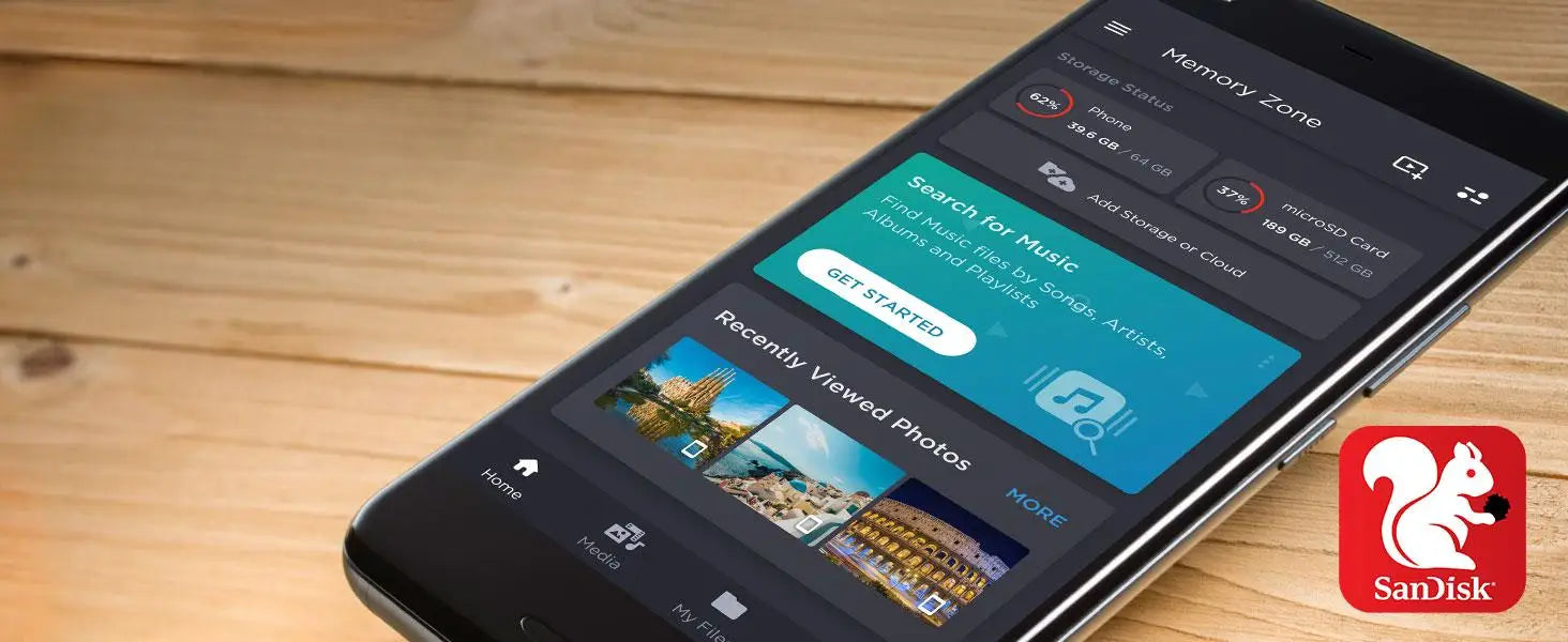 Available from the Google Play™ store, the SanDisk Memory Zone app lets you view, access, and back up your phone's files in one location. It can also automatically move files from your device to your memory card to free up space.