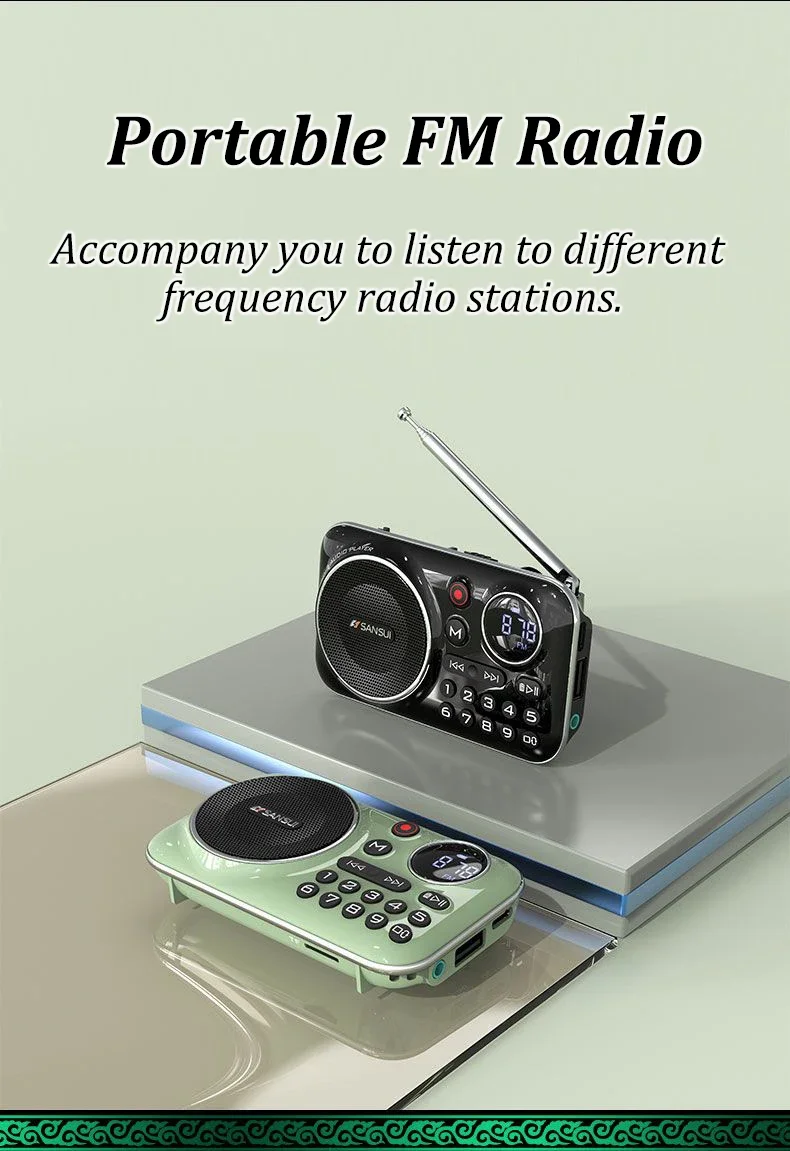 SANSUI F21 Outdoor Portable Multifunctional Walkman FM Radio Bluetooth Speaker MP3 Music Player Supports Recording Headphones