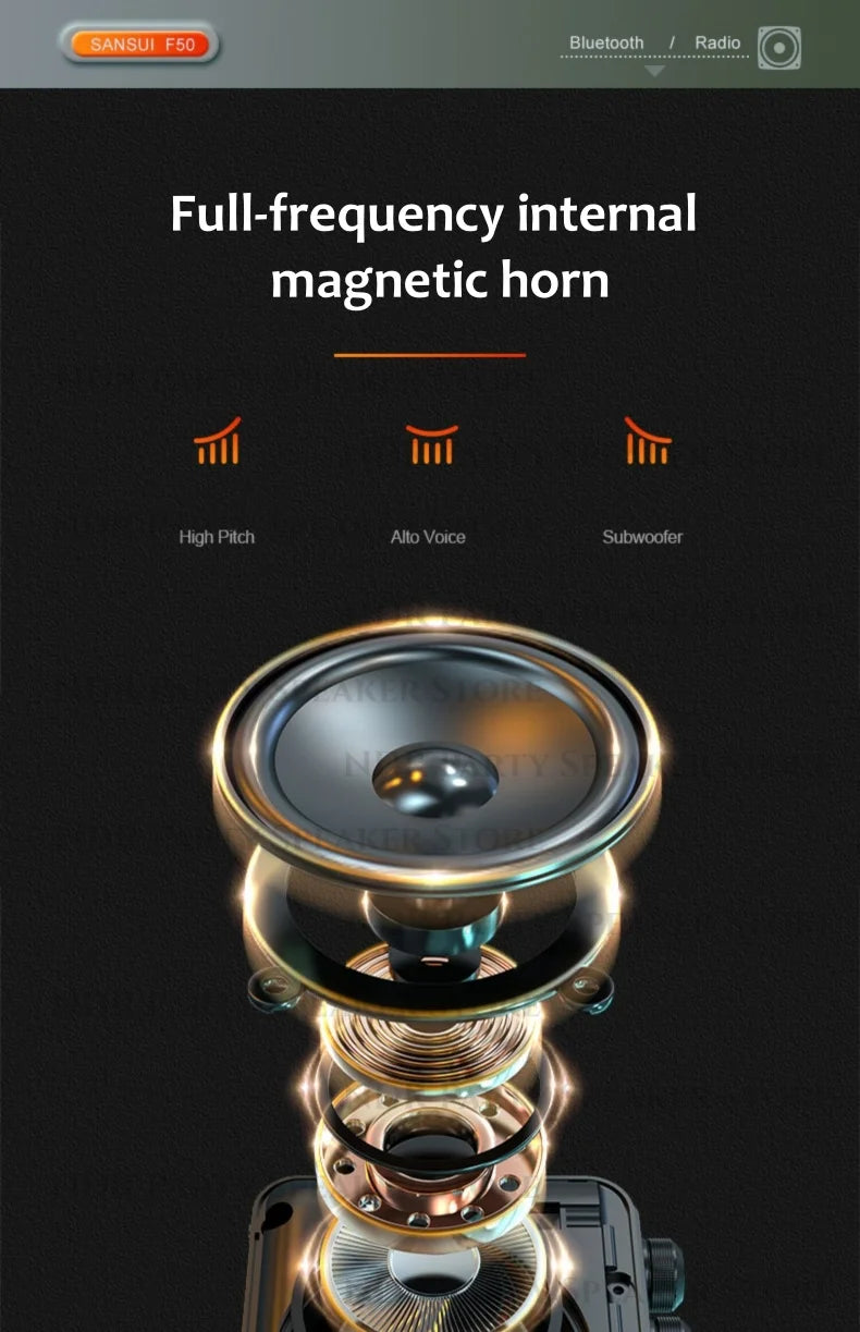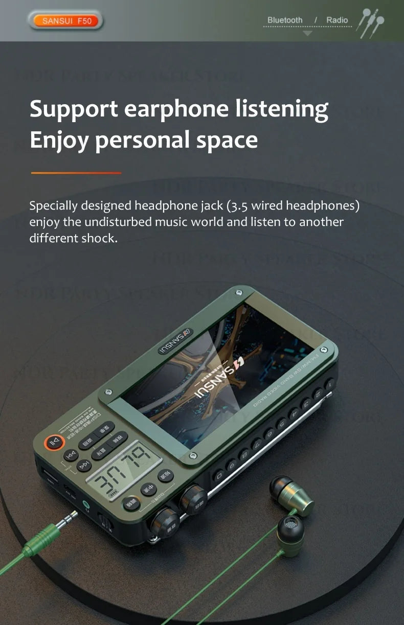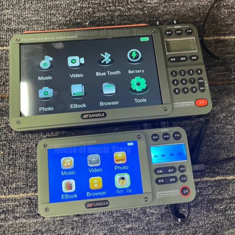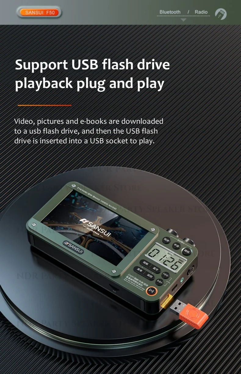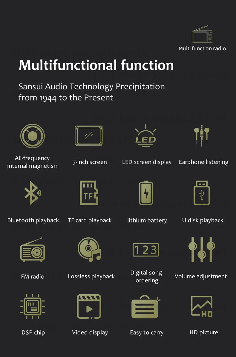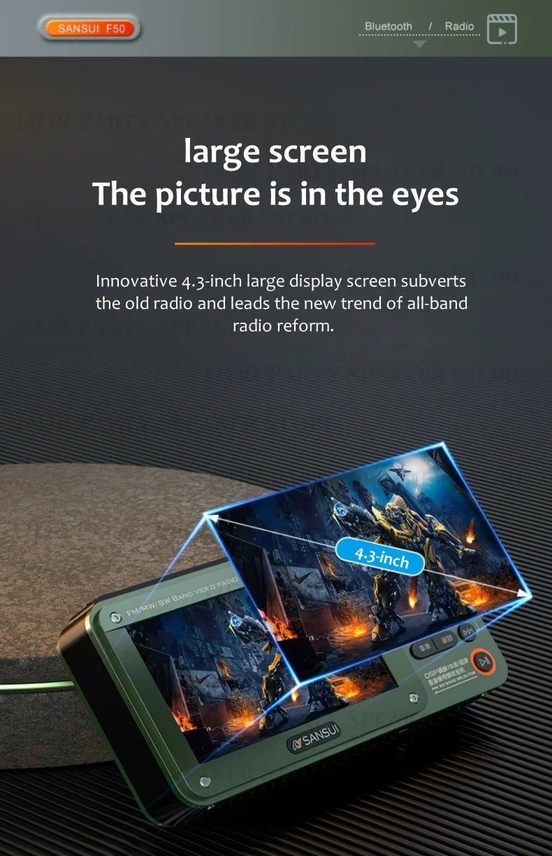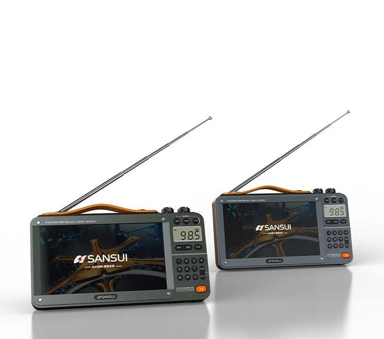 SANSUI Portable FM/MW/SW Radio 7-inch HD LED Display Radio Wireless Bluetooth Speakers Dual TF Card Slot MP4 Video Music Player