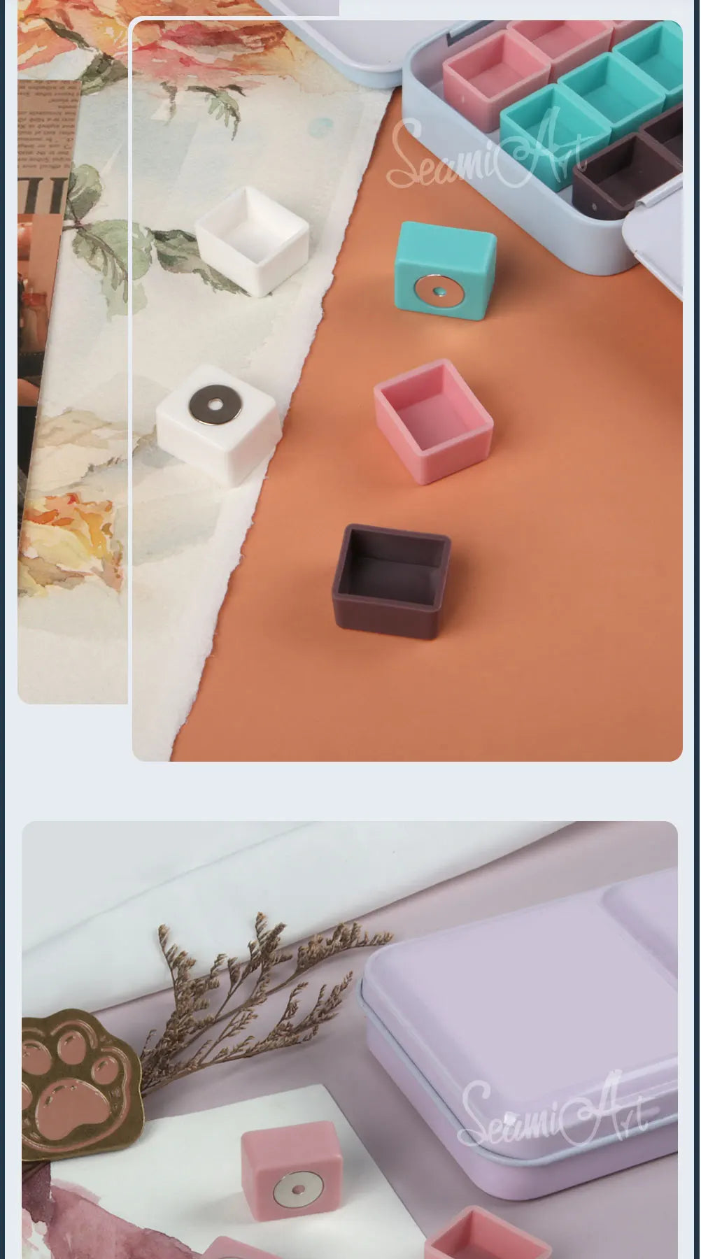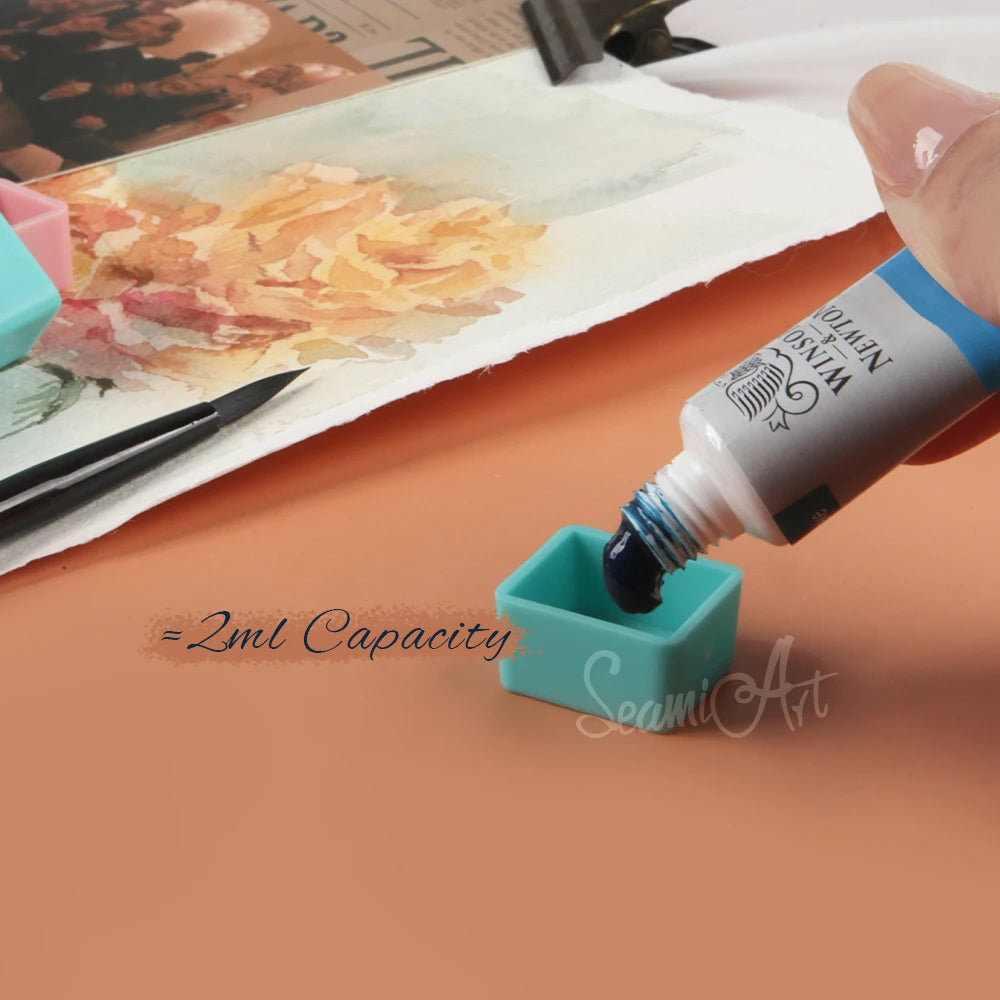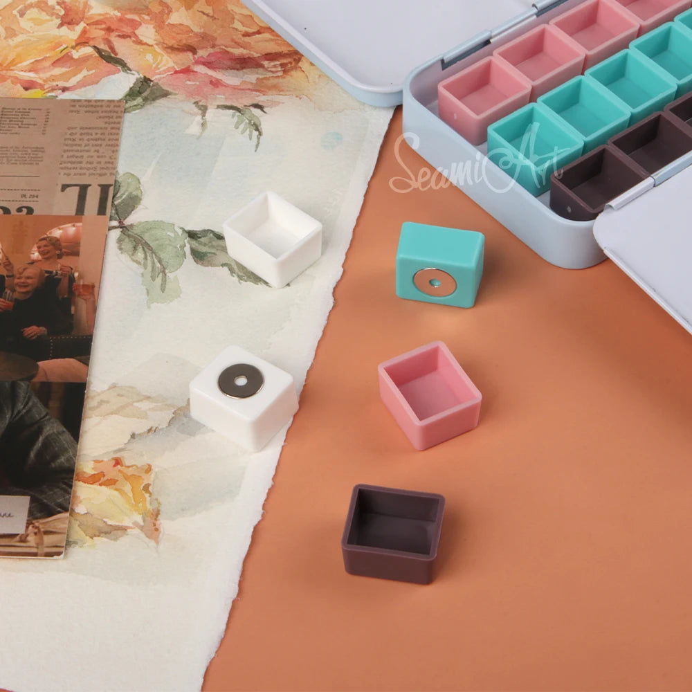 SeamiArt 50pcs Magnetic Half Pans Four colors for Watercolor Tube Subpackage Tin Box Palette Painting Tools Art Supplies