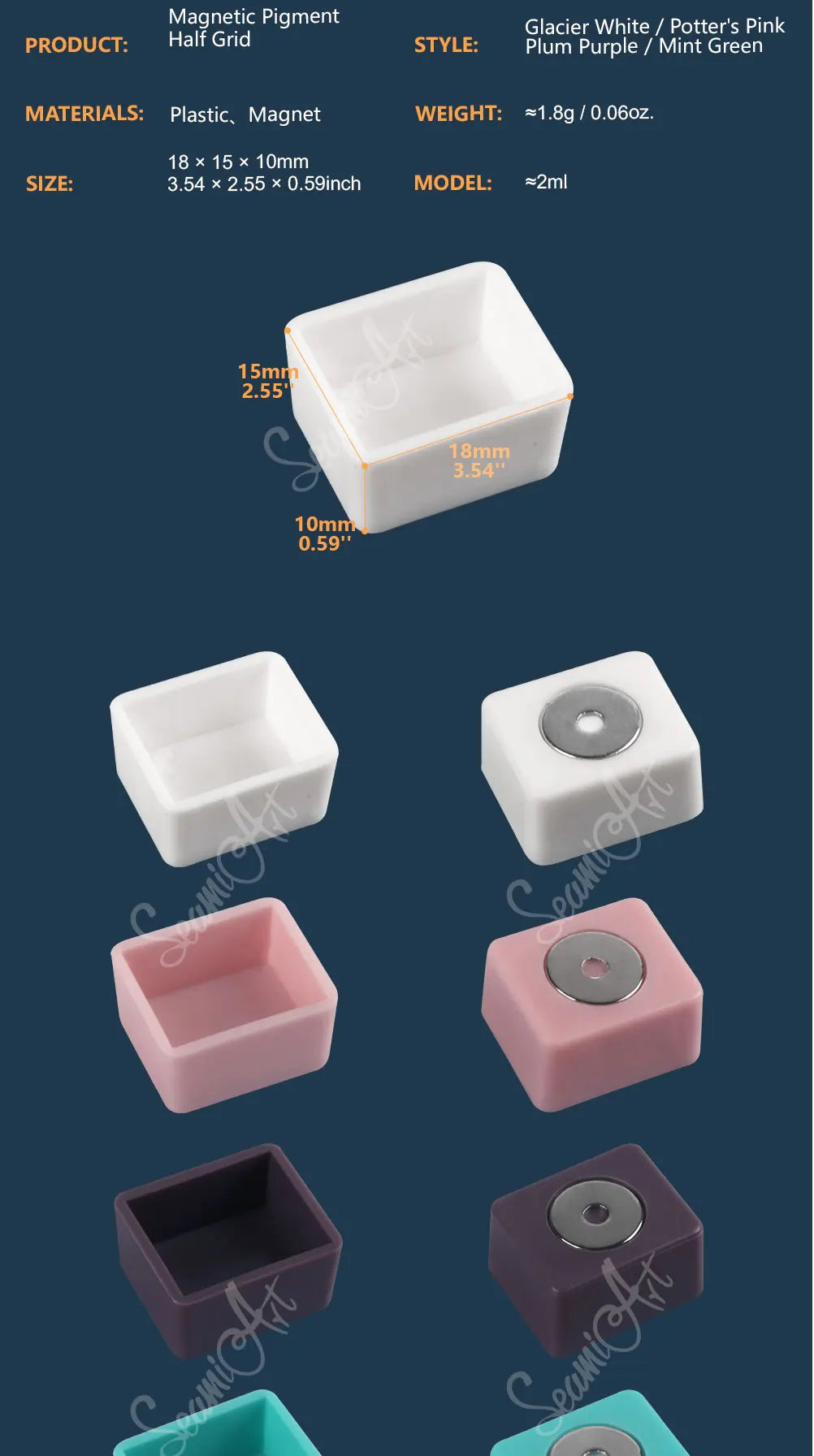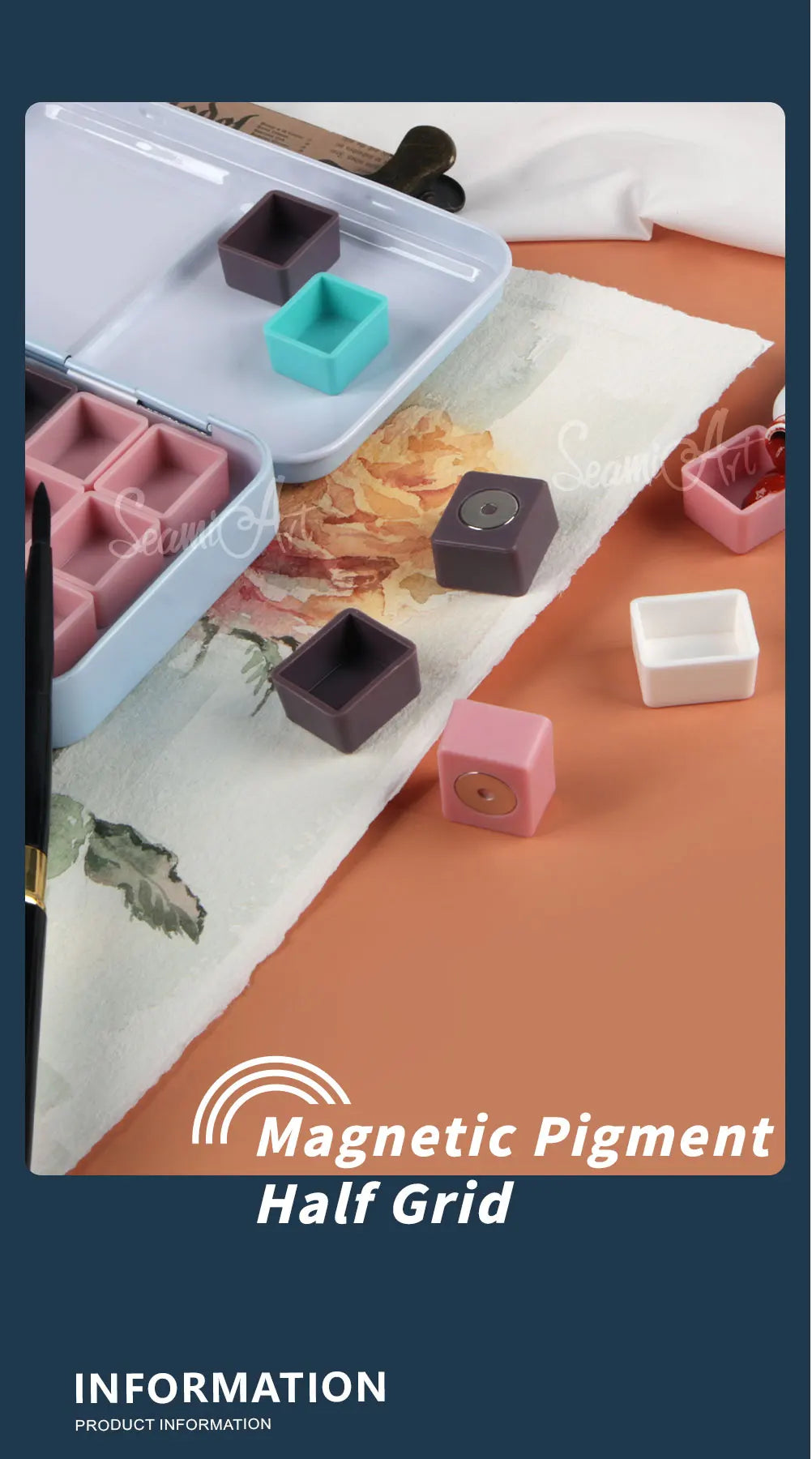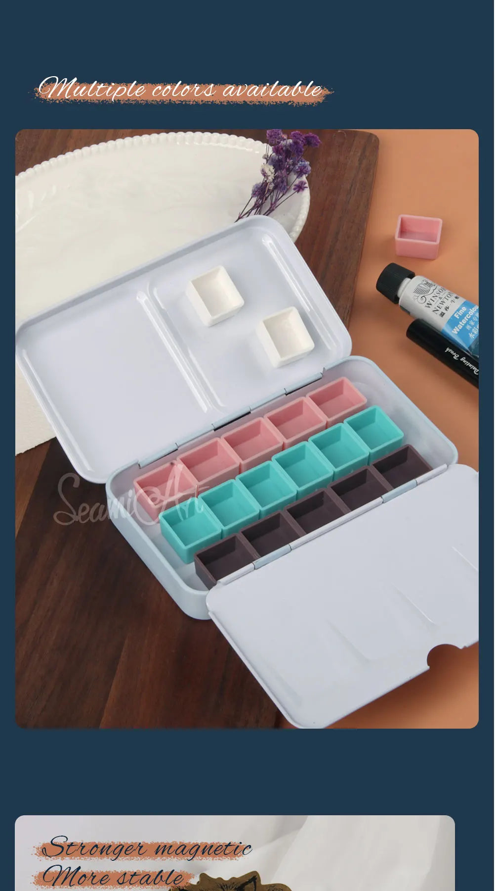 SeamiArt 50pcs Magnetic Half Pans Four colors for Watercolor Tube Subpackage Tin Box Palette Painting Tools Art Supplies