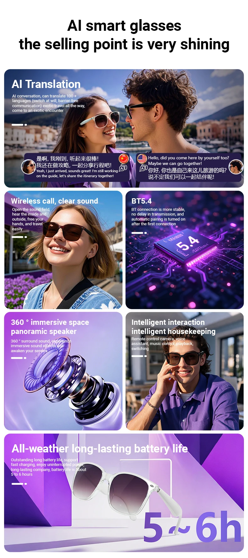 Bluetooth calls/music playback/voice assistant/remote control photography/AI translation |